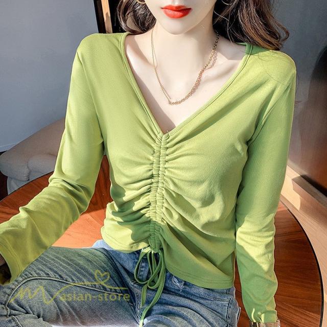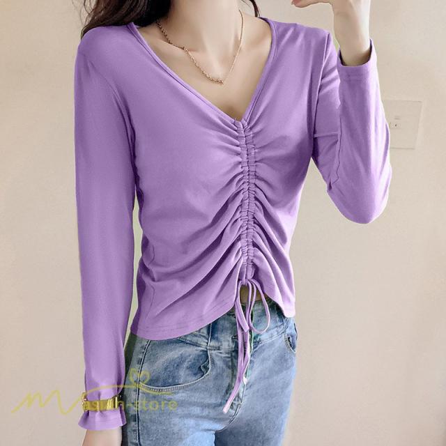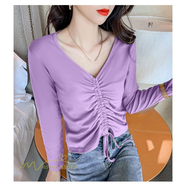 長袖Tシャツ インナー レディース インナーウェア 長袖 Tシャツ スリムインナー カットソー 無地 アンダーウェア インナーTシャツ ラウンドネック 秋新作 タック