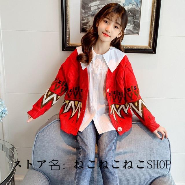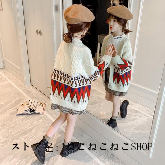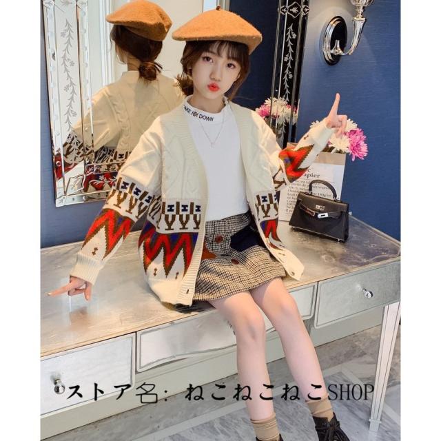 カーディガン セーター アウター 女の子 ニット 韓国子供服 トップス おしゃれ 秋冬 ガールズ ニットアウター 長袖 ゆったり ジャケット 通学着 お出かけ