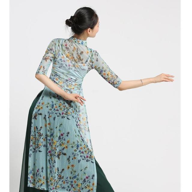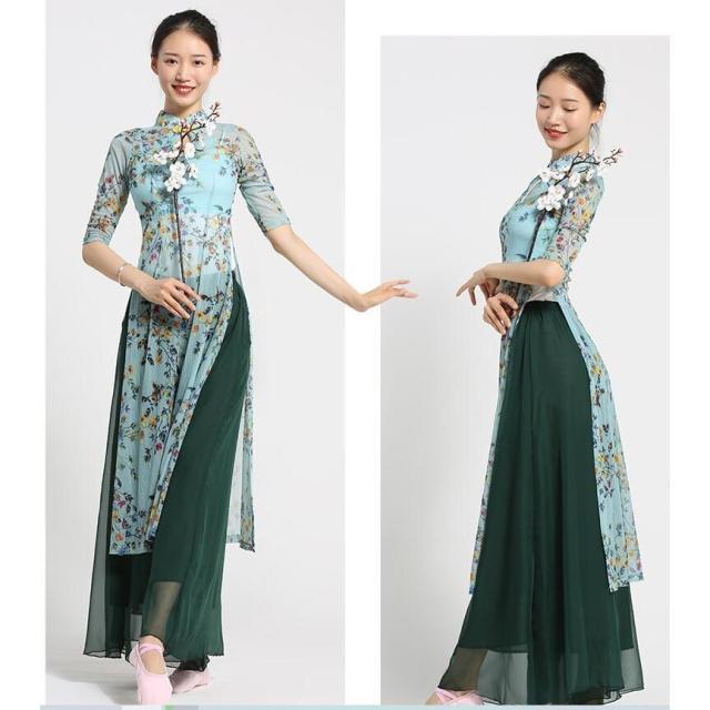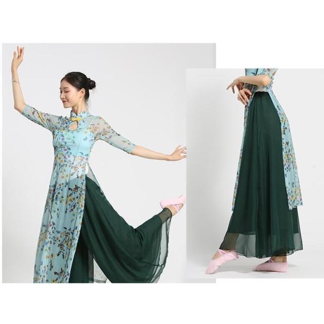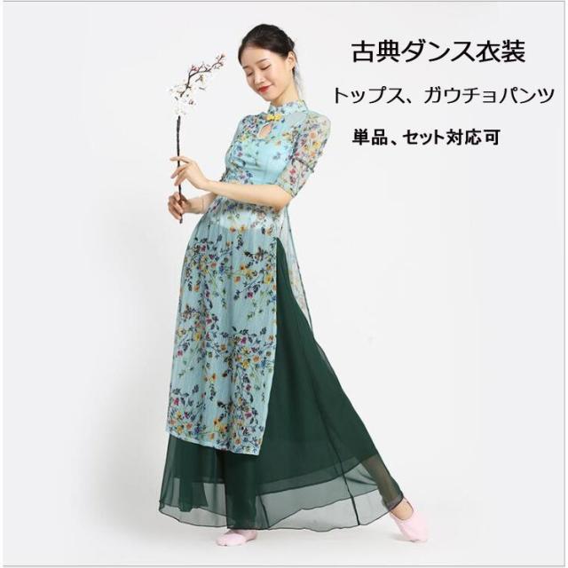 ダンスウエア 民族ダンス衣装 中国古典舞踊長袖 ブラウス 羽織 ガウチョパンツ 中華風バレエ衣装 モダンドレス ヨガ チャイナダンス練習着