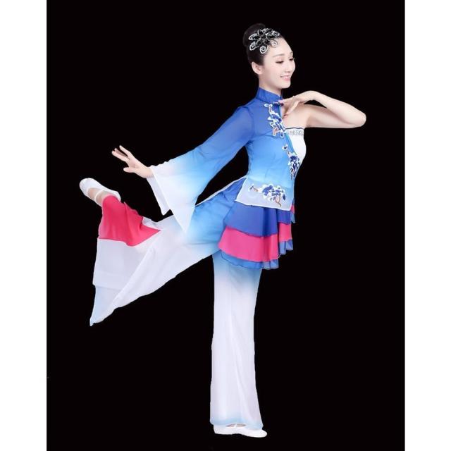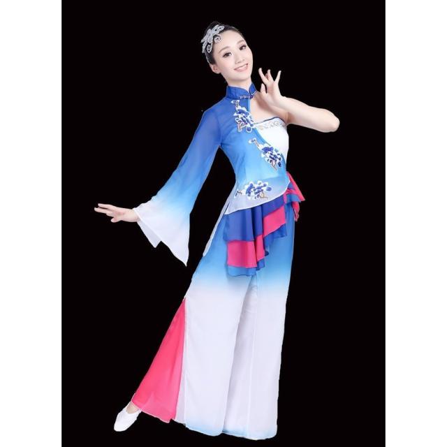 レディースチャイナドレス大人ダンス衣装 セットアップトップス+パンツ古典ダンス 傘ダンス 扇子ダンスステージ衣装演出服