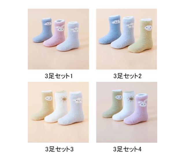 送料無料 子供 靴下 3足セット ソックス くつ下 ショートソックス フロアソックス もこもこ 暖か 防寒 保温 幼児用 キッズ 女の子 男の子 ベビー 部屋着 シンプル 柔らかい スポーツ お洒落 可愛い 萌え 保育園 幼稚園 保温 冬