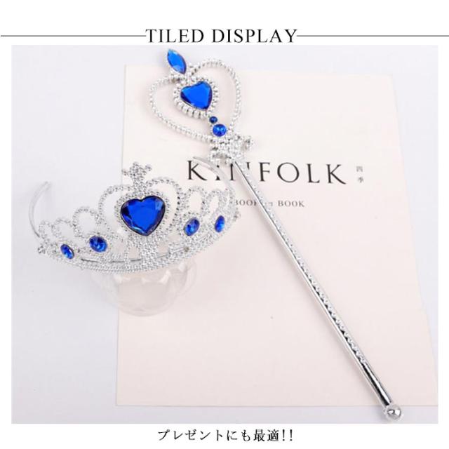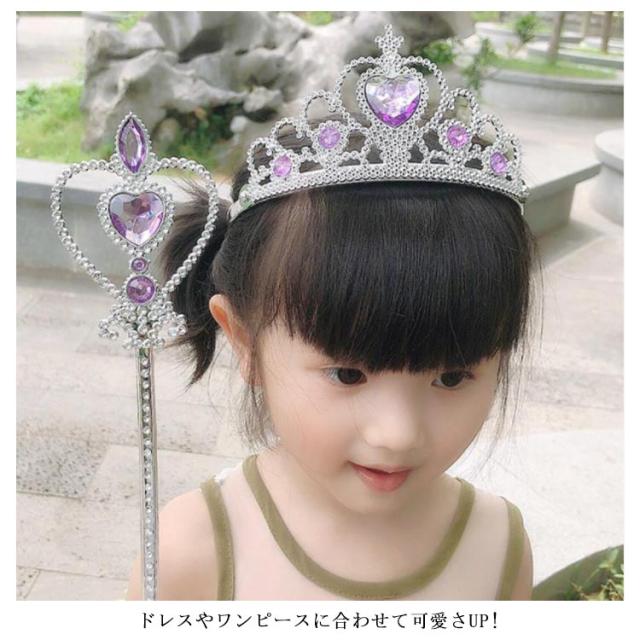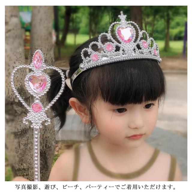 ヘアアクセサリー 2点セット ティアラ*ステッキ プリンセス キッズ おもちゃ 魔法の杖 王冠 女の子 子供 キッズ お姫様 写真撮影 小道具 子供用 ハロウィン コスプレ 仮装 なりきりごっこ プレゼント パーティー 誕生日