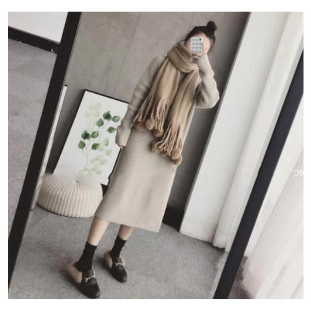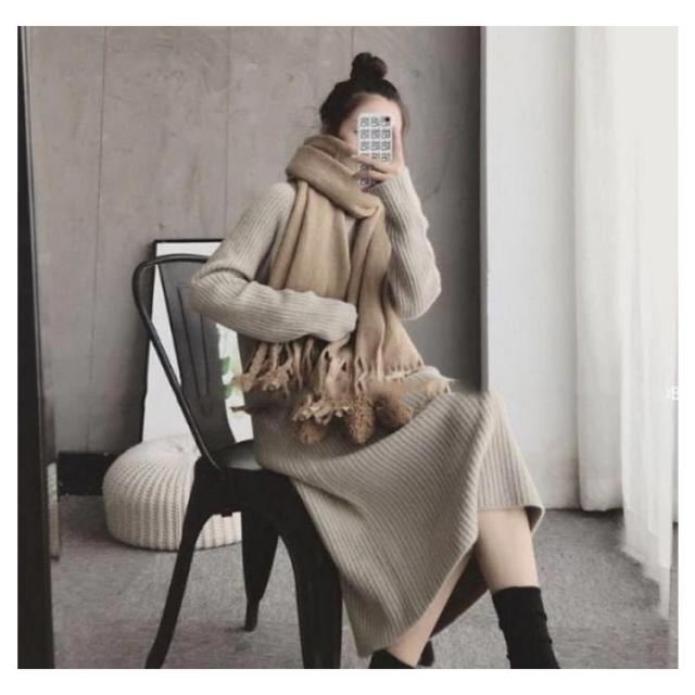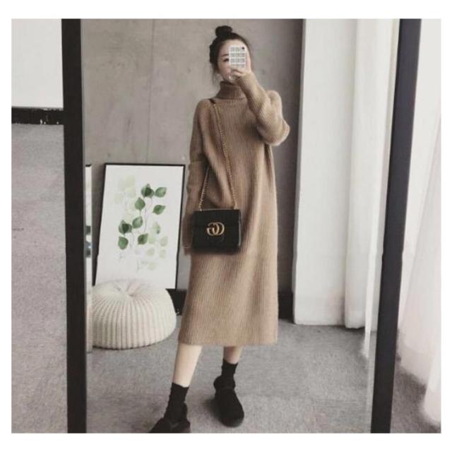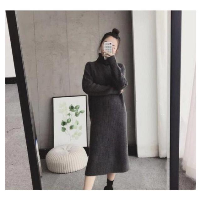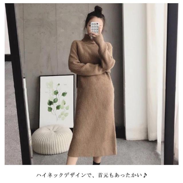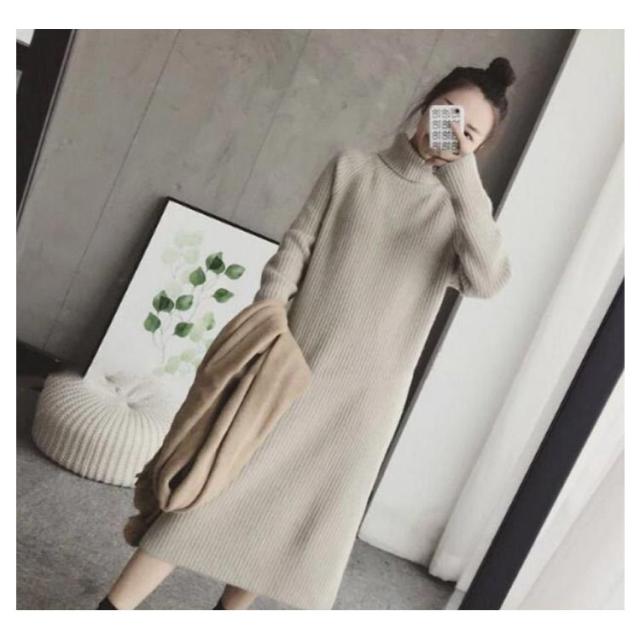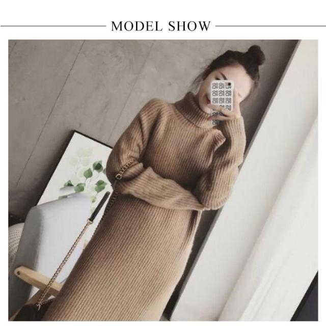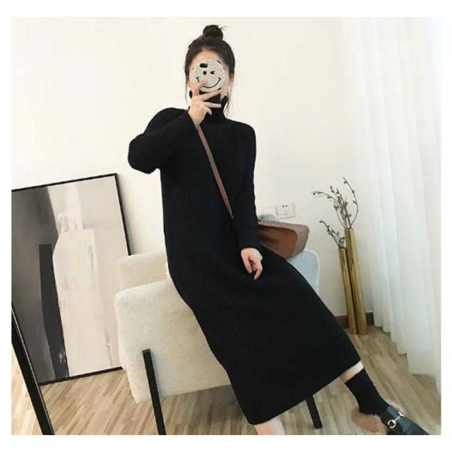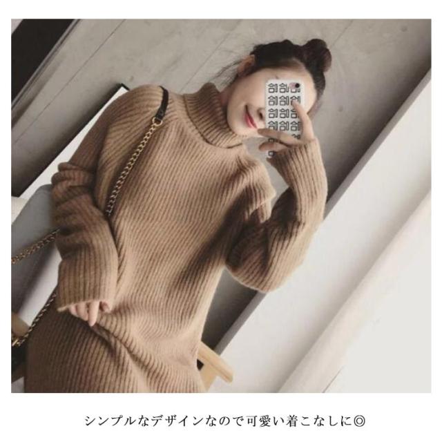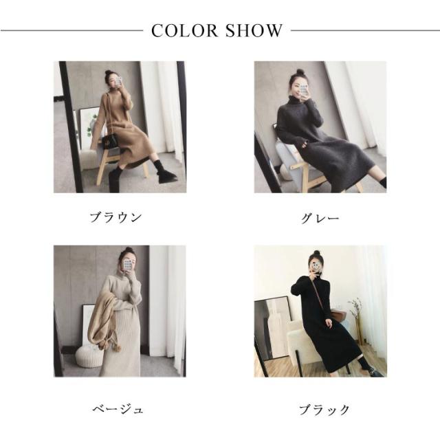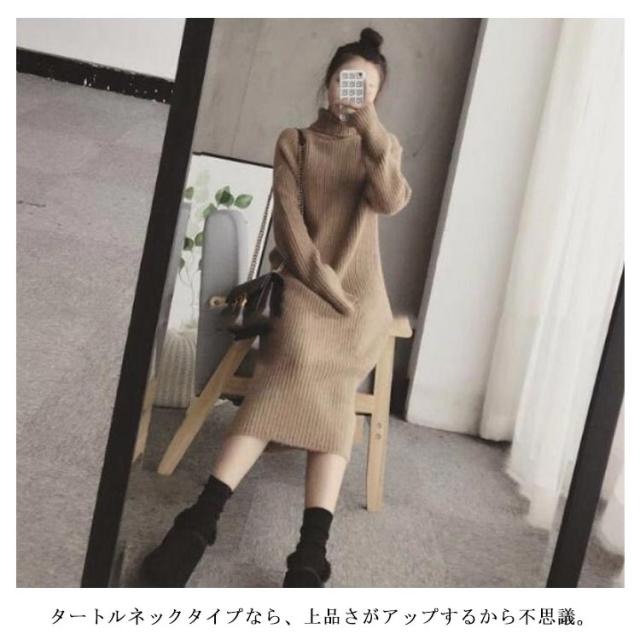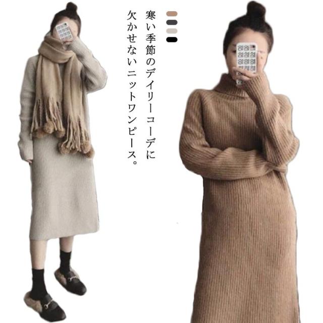 2021秋冬新作 レディース ニットワンピース ハイネック 長袖 ロング リブ ニット ワンピース タートルネック 無地 上品 シンプル 大きいサイズ 厚手 ゆったり 体型カバー 着?せ