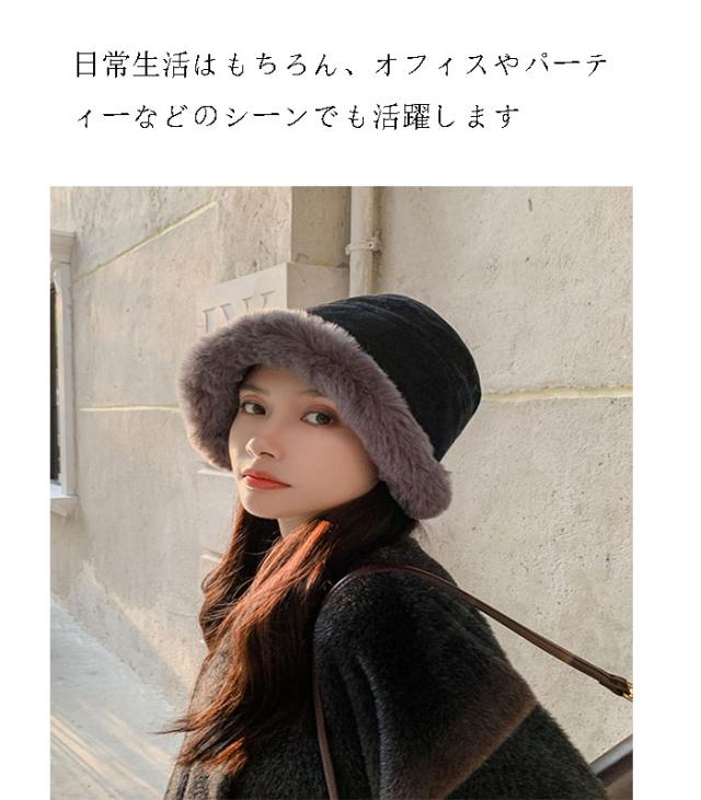 | 小顔に可愛く見えるバケットハット ふわふわもこもこ素材のバケットファーハット、肌触りが柔らかく保温性もgood 帽子バックには特別なデザイン、かわいい後ろ姿を演出! 日常生活はもちろん、オフィスやパーティーなどのシーンでも活躍します 顔周りが華やかで季節感溢れるアイテム! | |