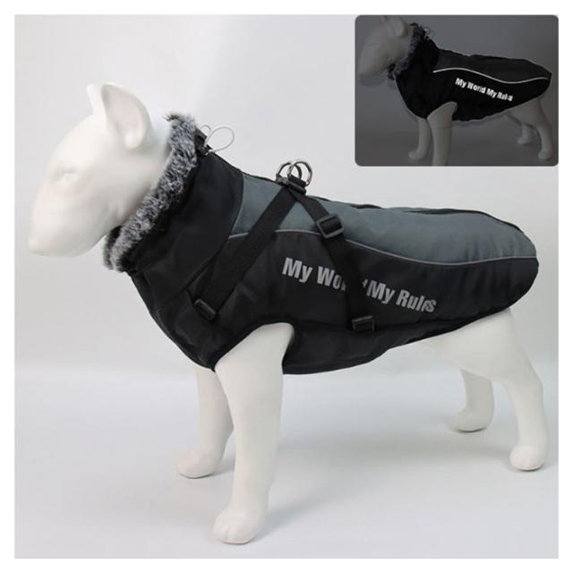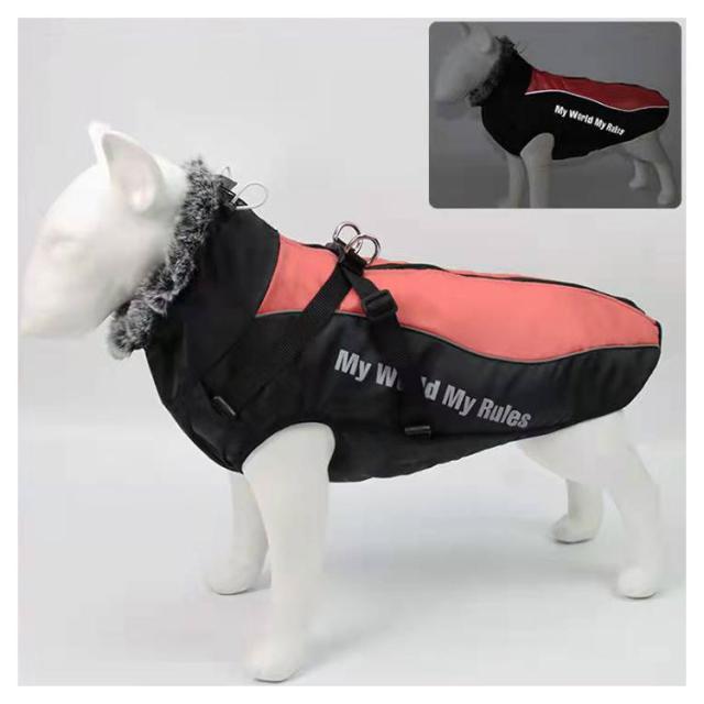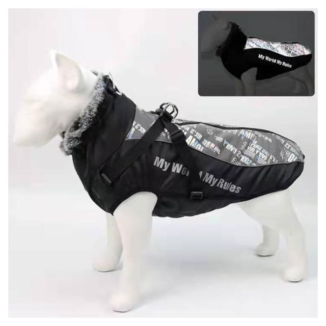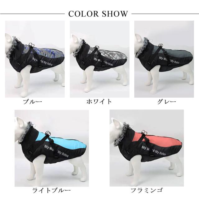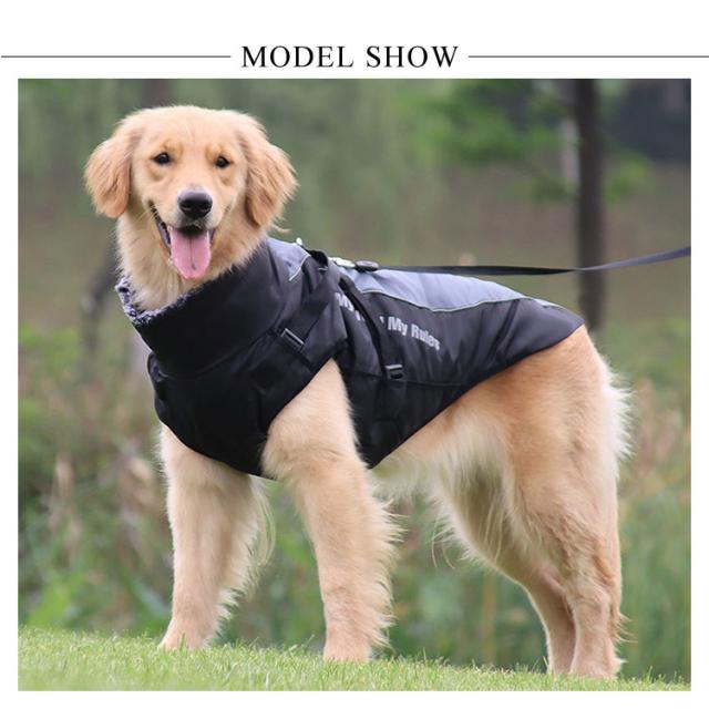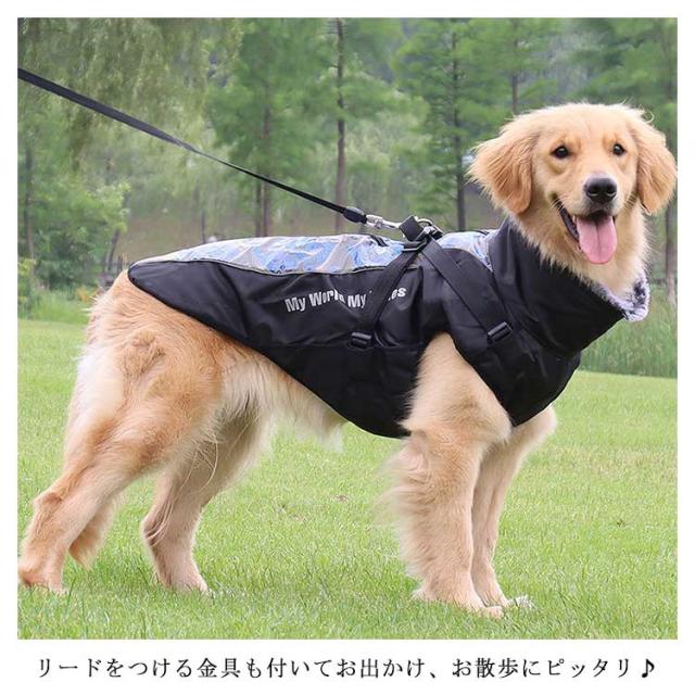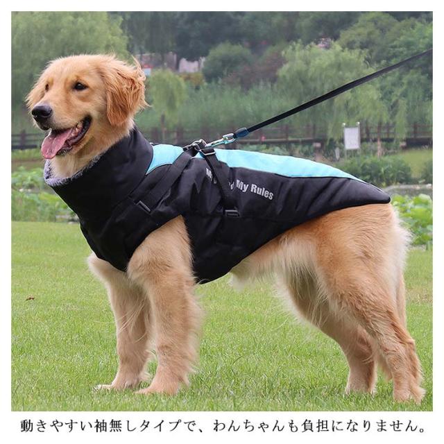 暖かい 犬服 ドッグウェア ジャケット 中綿ベスト リード穴付き 防風 防水 着せやすい 大きいサイズ 反射ライン 中型犬 大型犬 アウター ハイネック あったか 袖なし ゴールデンレトリバー ラブラドールレトリバー シェパード
