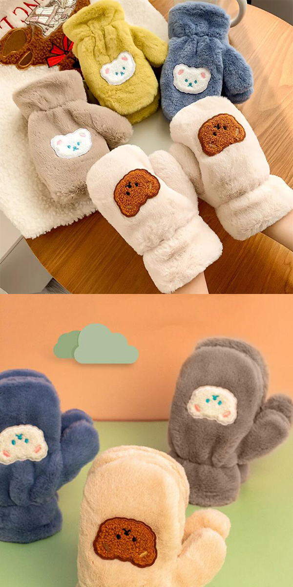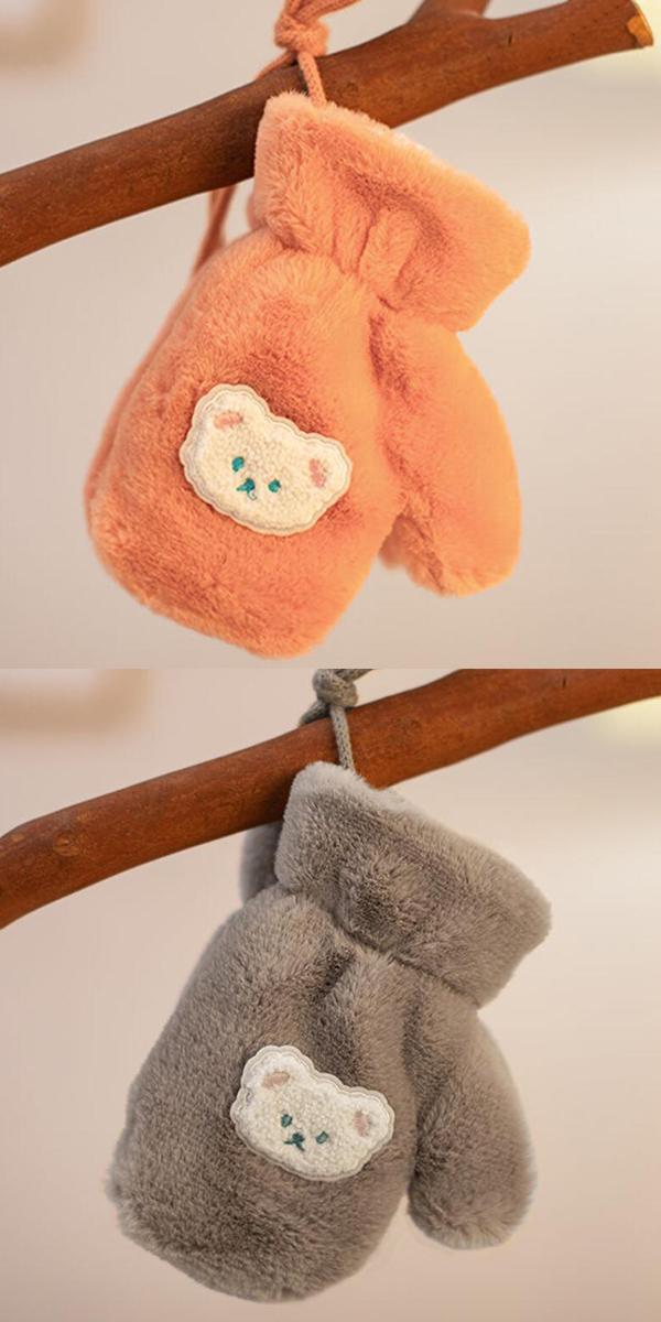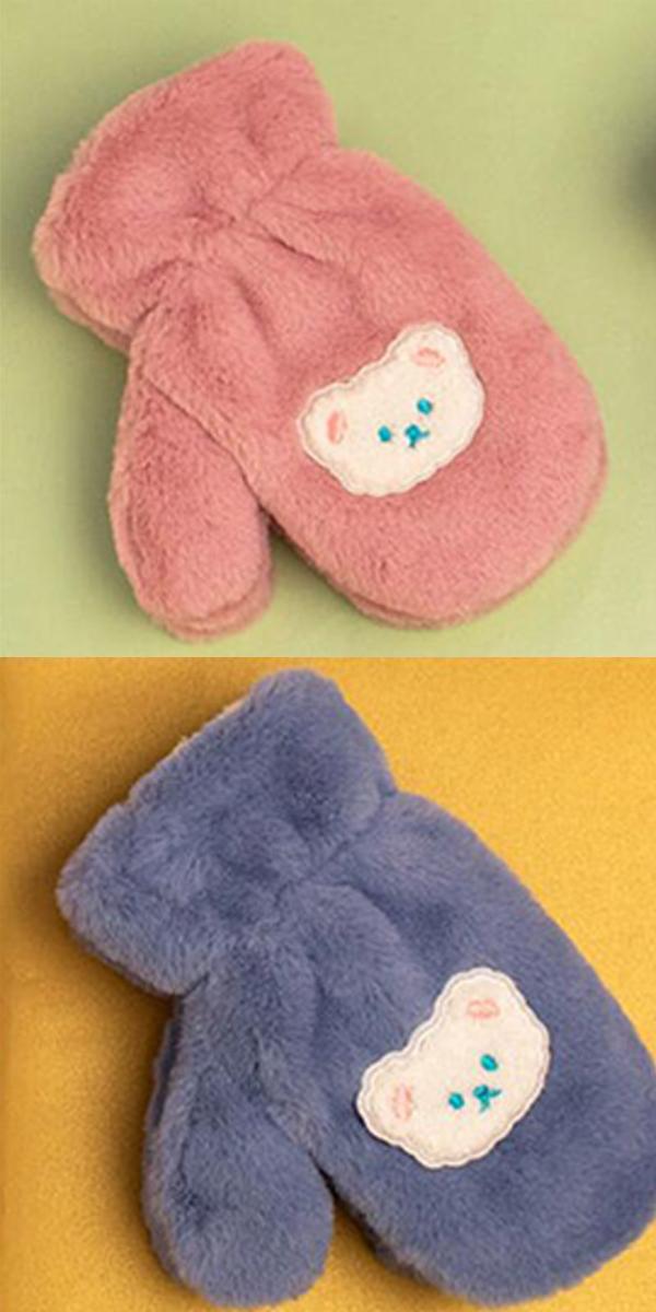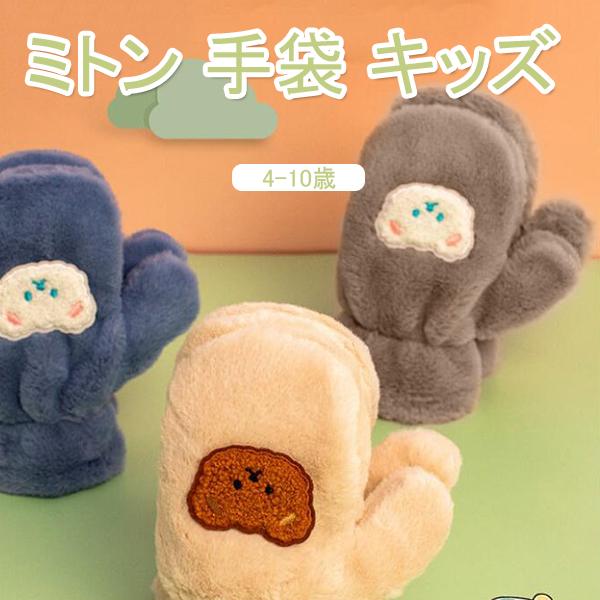 ミトン 手袋 キッズ キャラクター 子供 プレゼント 手ぶくろ クマノミ 秋冬春 男女兼用 5本指 てぶくろ ボア 裏起毛 裏フリース かわいい熊 厚手 防寒 保温 暖かい 通学 アウトドア 送料無料