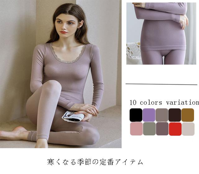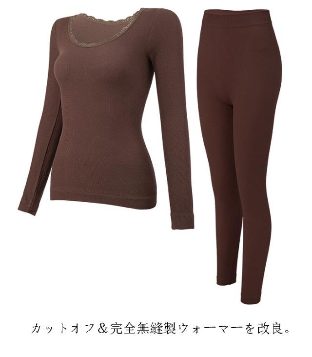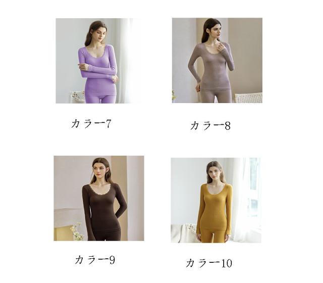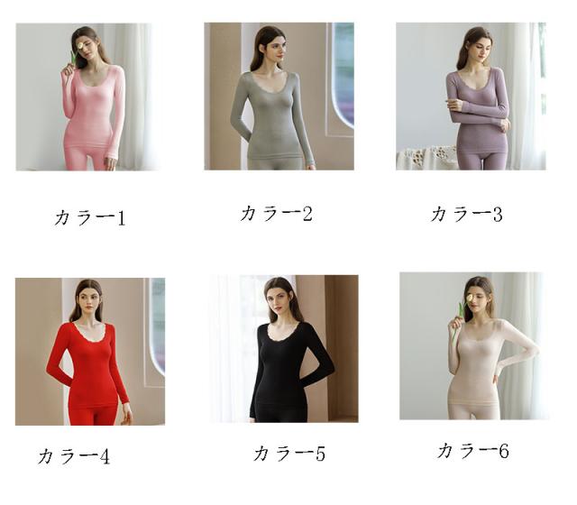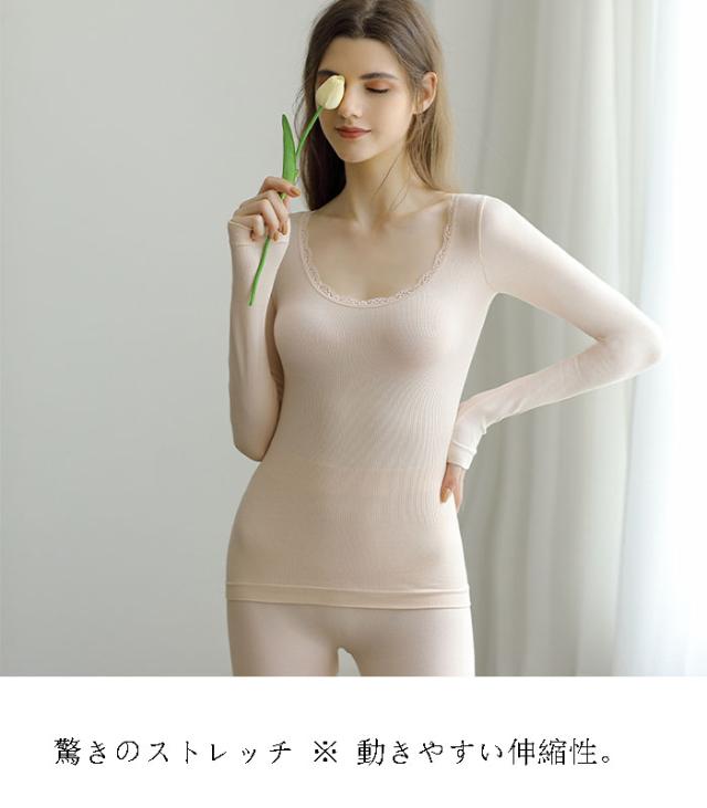 インナー レディース セット 秋冬 長袖 あったかインナー 暖かい 肌着 下着 ブラトップ 保温 Tシャツ 無地 Uネック