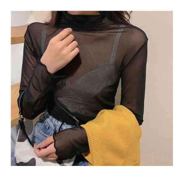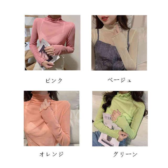 【送料無料】カラーシアートップス レディース ハイネック 長袖 春色 カラフル チュールトップス オフィス 学生 おしゃれ 春 トレンド インナー 無地 レイヤード パープル ピンク オレンジ グリーン