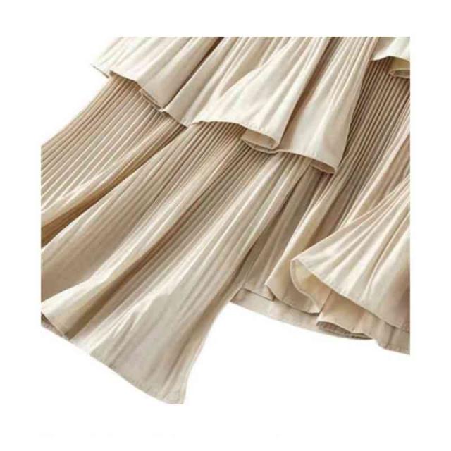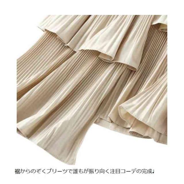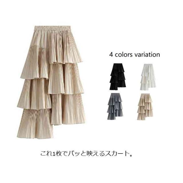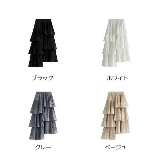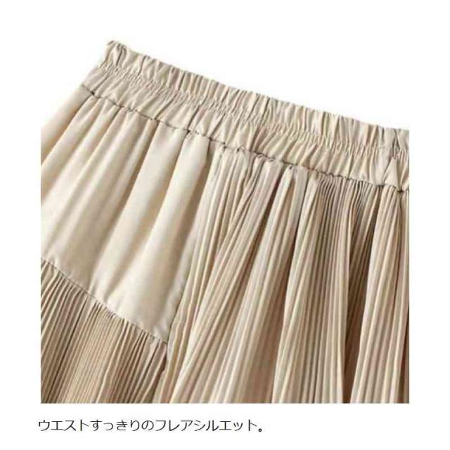 【送料無料】フレア スカート プリーツ ドッキング ロング マキシ丈 アシメトリースカート レイヤード ウエストゴム Aライン 体型カバー ブラック ホワイト グレー ベージュ ボトムス おしゃれ 通勤 春 春服