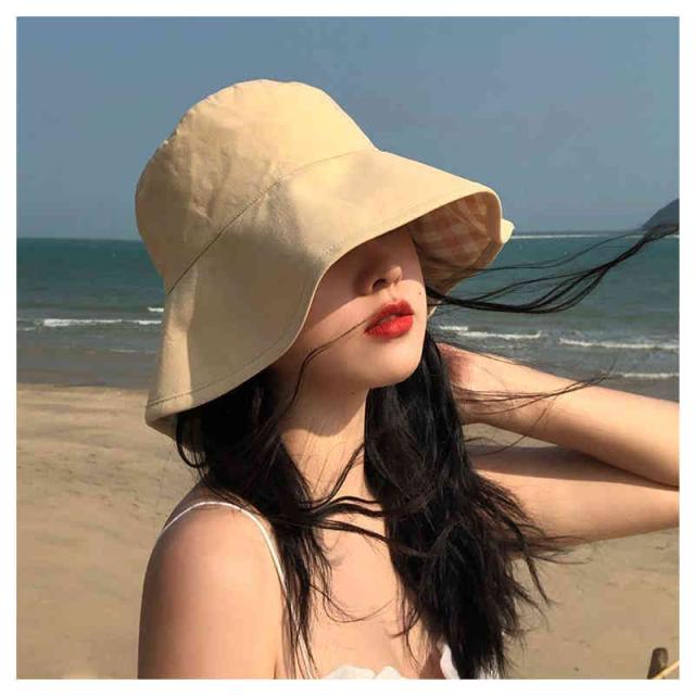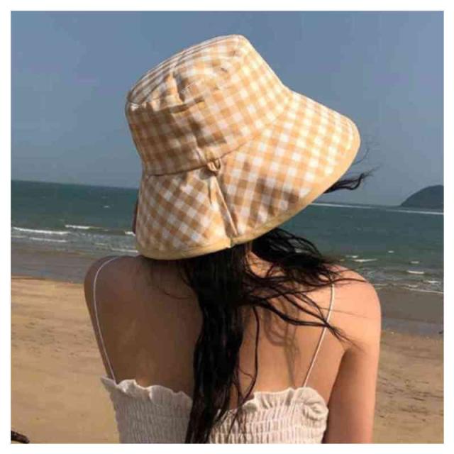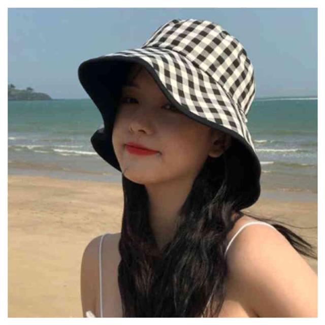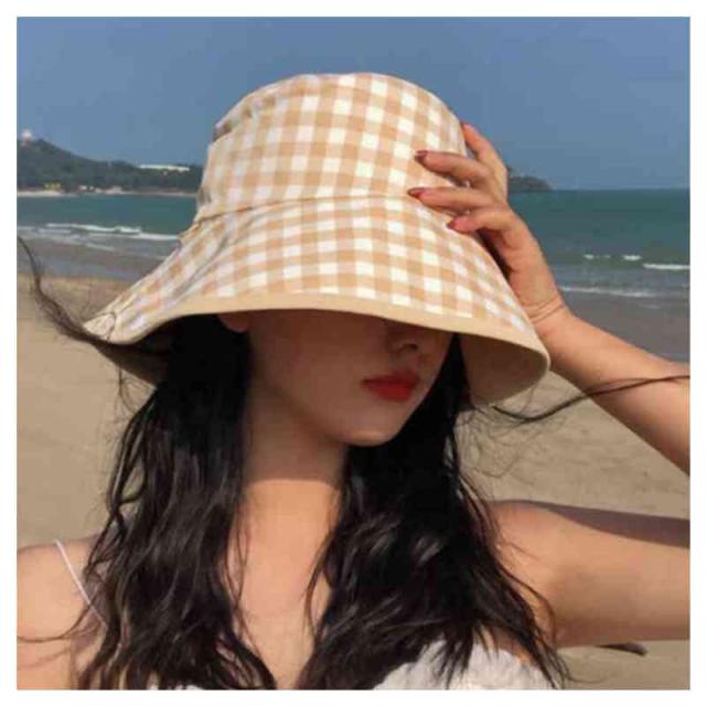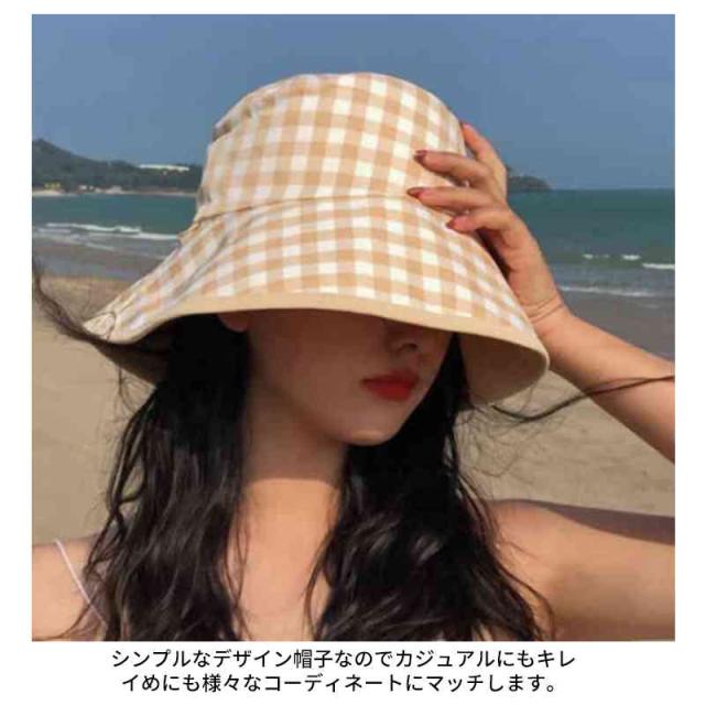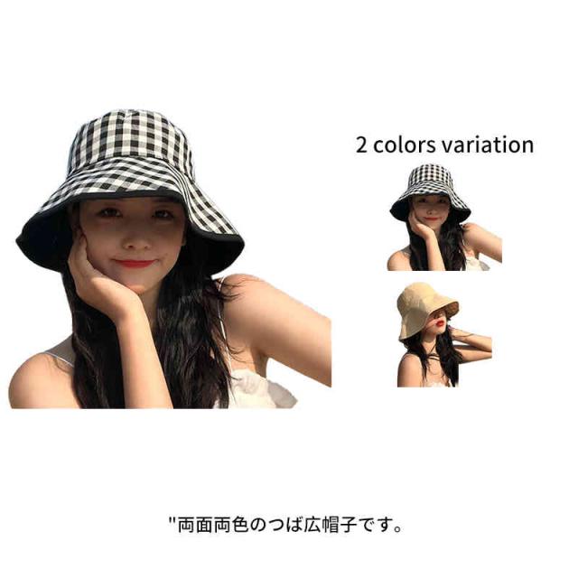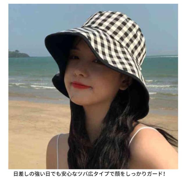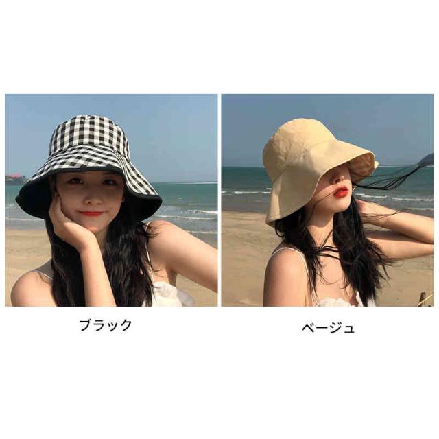 送料無料 ハット レディース 帽子 チェック 小顔効果 おしゃれ 20代 30代 両面両色 両面使える 日よけ 紫外線 日焼け防止 UVカット 通気性 UV帽子 2色way 折りたたみ 春 夏 秋 冬 一年中 カジュアル あごひも付き