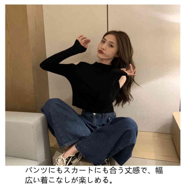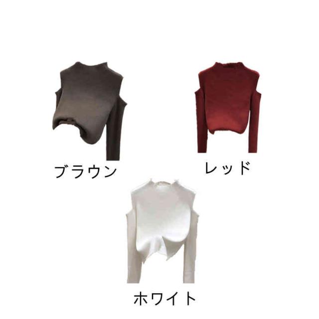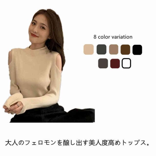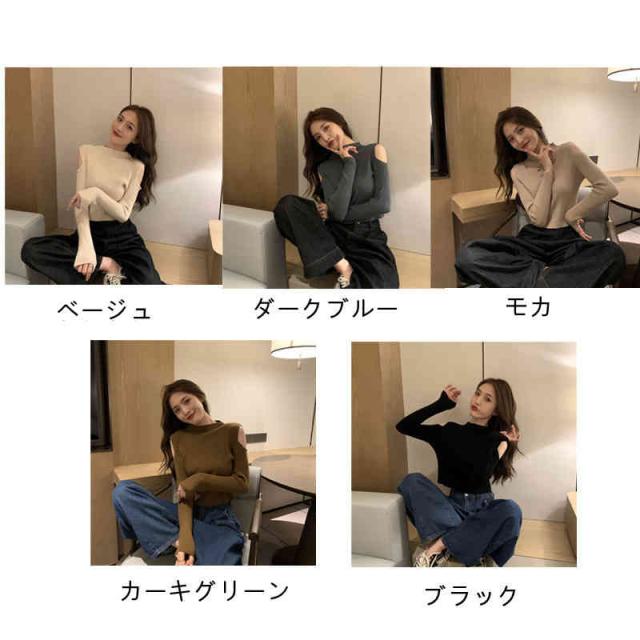 送料無料 ニット トップス 肩出し オフショル オープンショルダー セクシー カットソー セーター レディース シンプル 春 夏 秋 冬 タイト ショート丈 9色展開 スペシャル 個性的 カジュアル お洒落 プルオーバー ヤング リブ