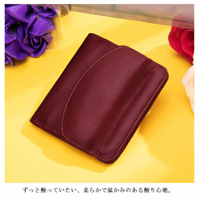 | コンパクトなのに長財布並みの大容量◎ 小銭・お札・カードが入るコンパクトな薄型二つ折り財布! ずっと触っていたい、柔らかで温かみのある触り心地。 個人情報を盗んで悪用するなどの犯罪から守るスキミング防止機能付き。 トレンドの小さいバッグも入るコンパクトさと、ボックス型小銭入れ&カード収納がタップリ入る収納力。 いつでもスマートに持ち運べます。 | |
