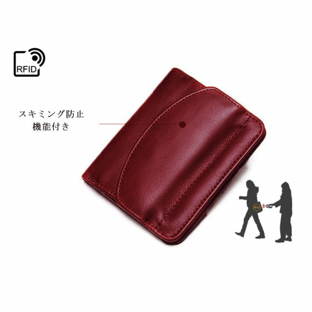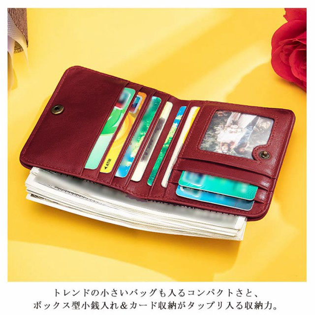レディース 札入れ スキミング防止 二つ折り財布 box型小銭入れ 牛革 ボックス型 外側 無地 ミニ財布 カード 送料無料 2つ折り 仕切り カード収納 コンパクト 大容量 薄い 使いやすい 短財布