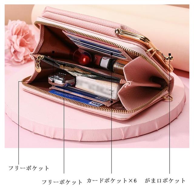 長財布 がま口 ショルダーバッグ ショルダーストラップ付き 財布 可愛い カード入れ 小銭入れ レディース サイフ ウォレット ショルダー お財布ポシェット コンパクト スマホポーチ 縦型