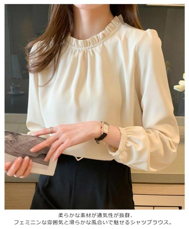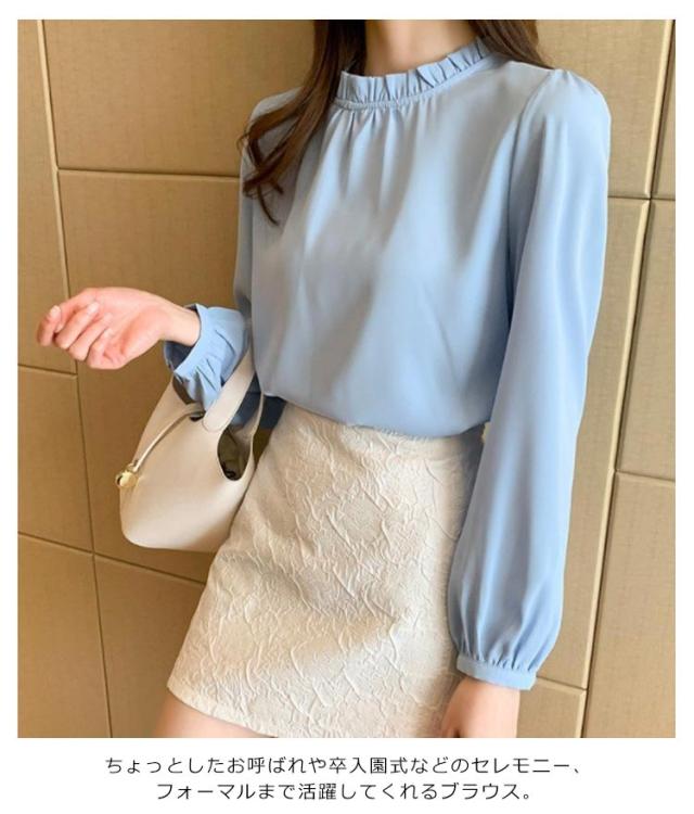 春 シフォンシャツ フリルネック 5色 卒園式 シャツ お呼ばれ 春服 スーツ トップス フォーマルブラウス ブラウスシャツ レディース OL 結婚式 二次会 入学式 卒業式 長袖ブラウス 入園式 通勤