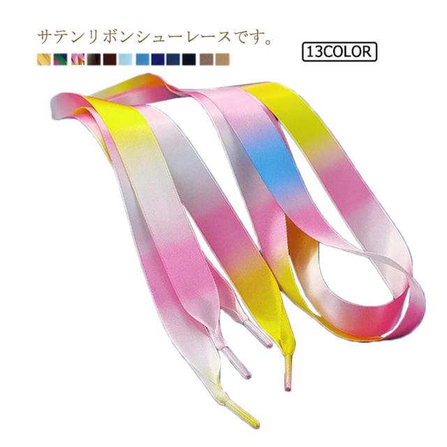 サテン リボン 靴ひも カラー 手芸 くつひも りぼん 2本組 球技大会 スニーカー 可愛い 靴 学園祭 文化祭 イエロー 運動会 紐 プレゼント ギフト サテンリボン 推し 平紐 靴ひも 靴ヒモ 紐