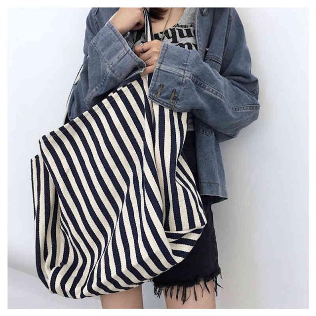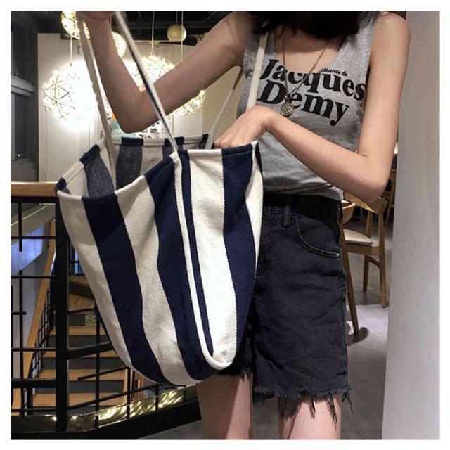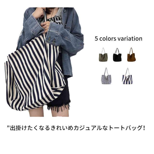 送料無料 トートバッグ レディース キャンバス 帆布 おしゃれ かわいい ストライプ 軽量 軽い 大容量 バッグ ランチバッグ ショッピング 通勤 マーケット 帆布 シンプル