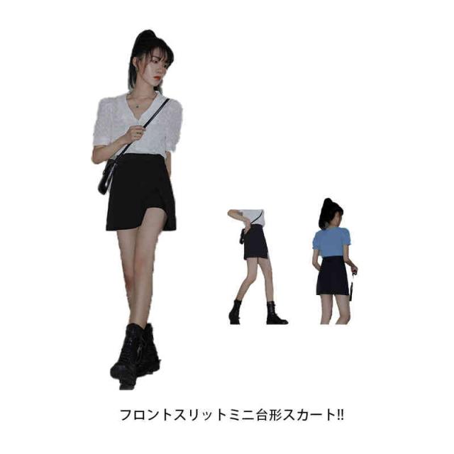 送料無料 ミニ台形スカート スリット ブラック スカート ミニ丈 ミニスカ 無地 美脚 可愛い レディース ショート丈 ファスナー付き インナーパンツ付き 裏地付き ペチパンツ付き ボトムス S M L XL 2XL 3XL 4XL