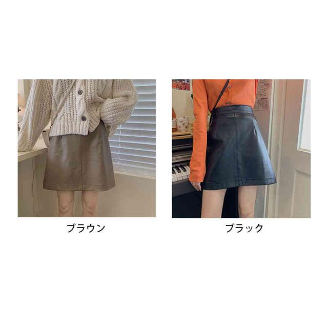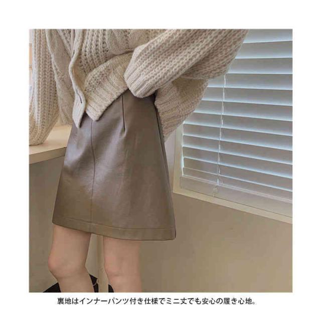 送料無料 スカート Aライン 台形 ミニ ミニスカ フェイクレザー 無地 おしゃれ レディース 春 夏 秋 冬 合皮 ファスナー付き インナーパンツ付き 裏地付き ペチパンツ付き ボトムス S M L XL シンプル すっきり カジュアル
