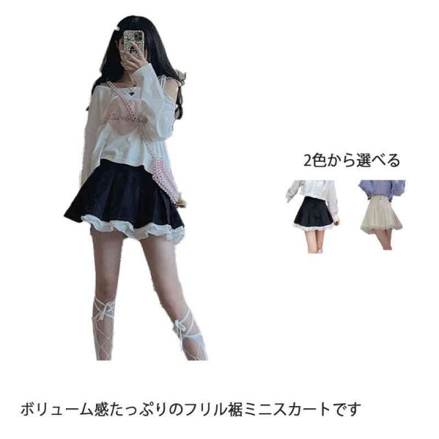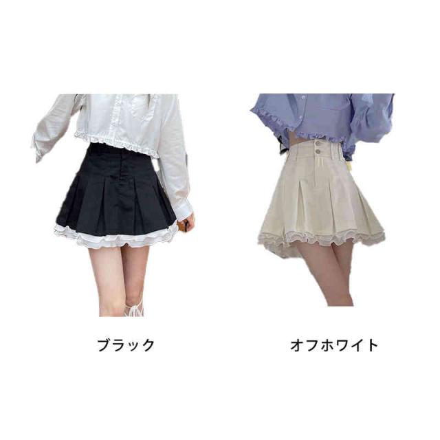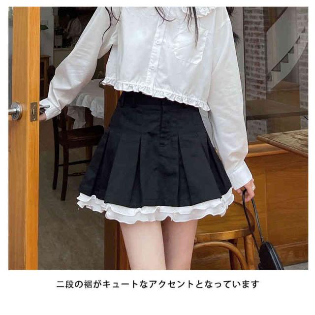 送料無料 フレアスカート ミニ フリル 黒 ブラック 白 ホワイト レディース プリーツ ボトムス インナー付き ハイウエスト ボタン付き ダブルボタン かわいい 可愛い カワイイ 春 春物 春服 夏 夏物 夏服 20代 10代