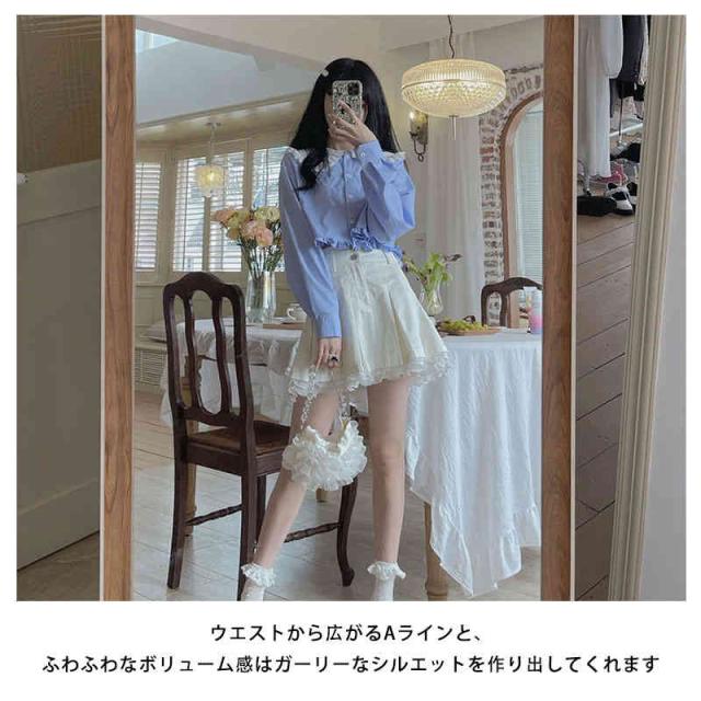 | ボリューム感たっぷりのフリル裾ミニスカートです。 二段の裾がキュートなアクセントとなっています。 ウエストから広がるAラインと、ふわふわなボリューム感はガーリーなシルエットを作り出してくれます。 スカートのフレアーラインは、気になる腰回り、ヒップをしっかりカバー★ | |