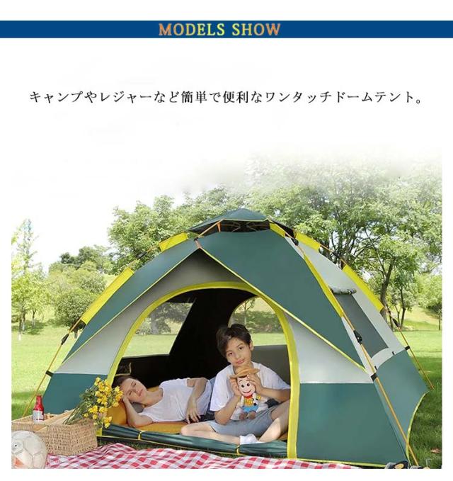 | 2-3人用 ワンタッチテント キャンプやレジャーなど簡単で便利なワンタッチドームテント。UVカット、防災用の多機能性 | |