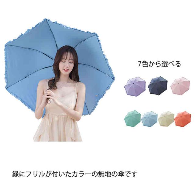 日傘 フリル カラー 完全遮光 遮光率100% 傘 レディース 晴雨兼用 UVカット99.9% UPF50+ おしゃれ かさ カサ カワイイ 可愛い 母の日 プレゼント ギフト 紫外線対策 遮光 遮熱 上品 20代 30代 40代 50代 60代