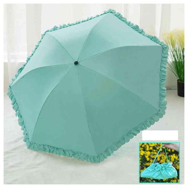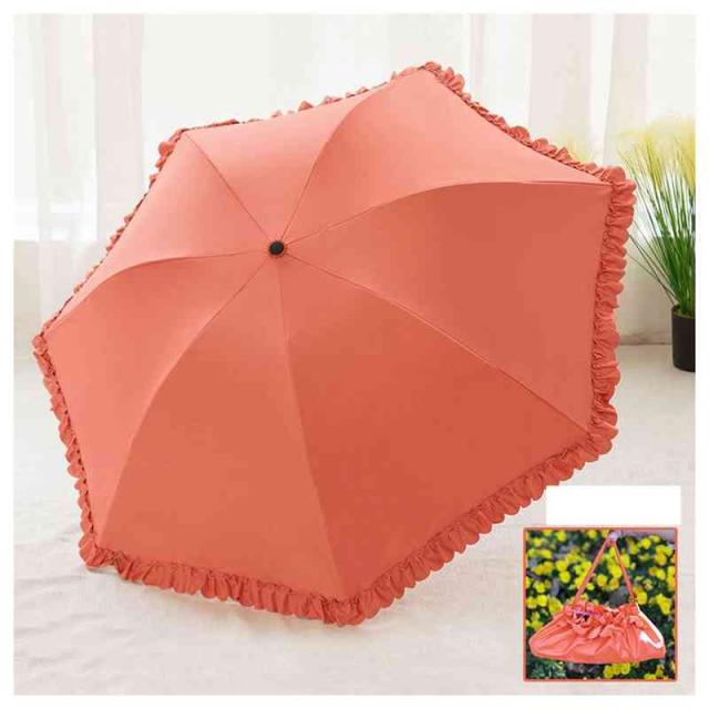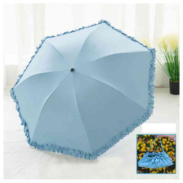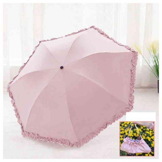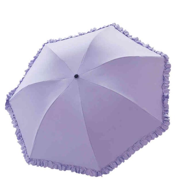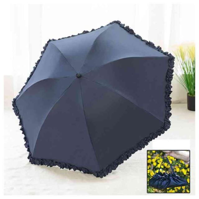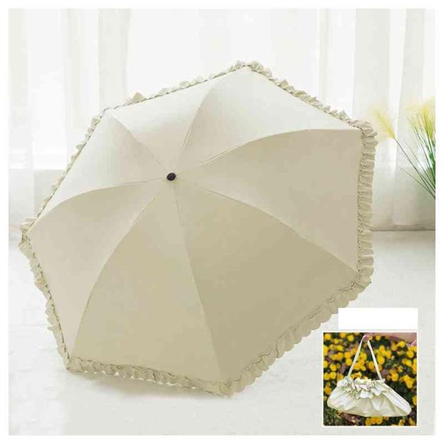 | 縁にフリルが付いたカラーの無地の傘です。 本体と共生地のフリルなので目立ち過ぎずスッキリとした印象です。 フリルがキュートさを最大限に演出しています。 傘入れはミニトートバッグにもなります。 紫外線を防いで、肌老化を防ぎましょう! | |