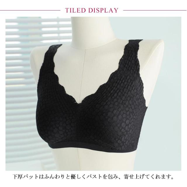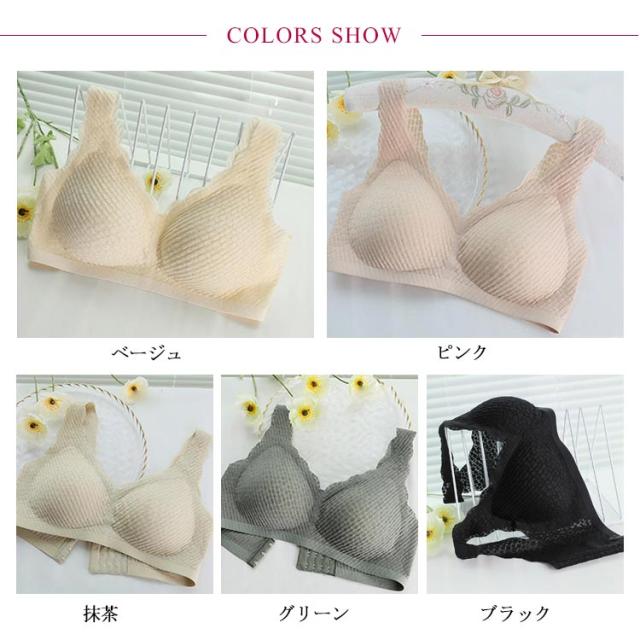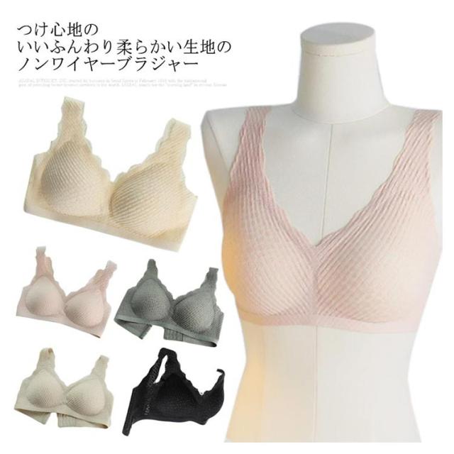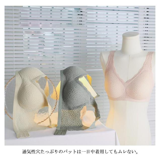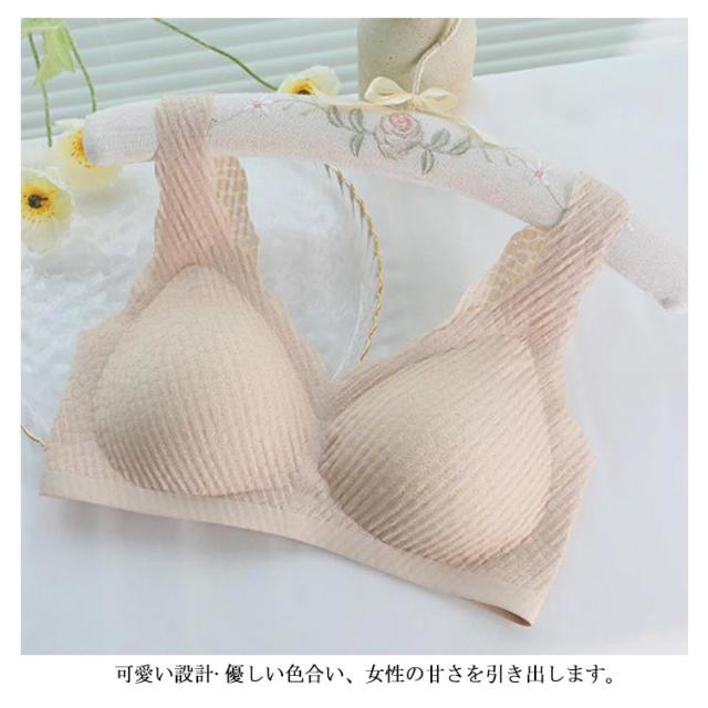 | つけ心地のいいふんわり柔らかい生地のノンワイヤーブラジャー 下厚パットはふんわりと優しくバストを包み、寄せ上げてくれます。 ストレッチ性の優れた広幅ショルダーが、肩の食い込みを抑え、一日中着用していてもストレスうぃ感じられない。 通気性穴たっぷりのパットは一日中着用してもムレない。 肌に優しい素材を使用し、柔らかい着用感で、身体の動きにフィットします。 可愛い設計?優しい色合い、女性の甘さを引き出します。 | |