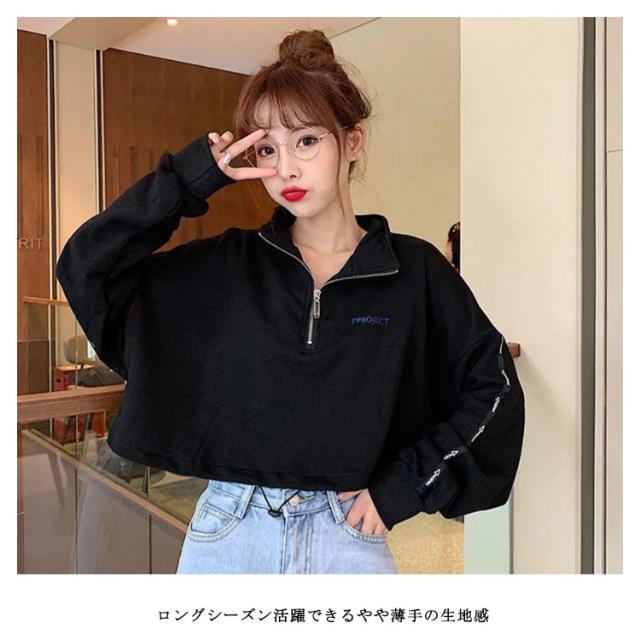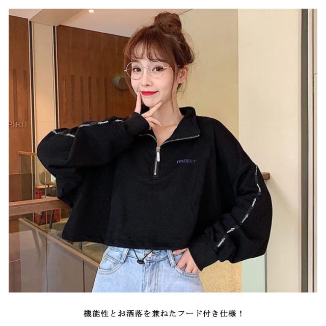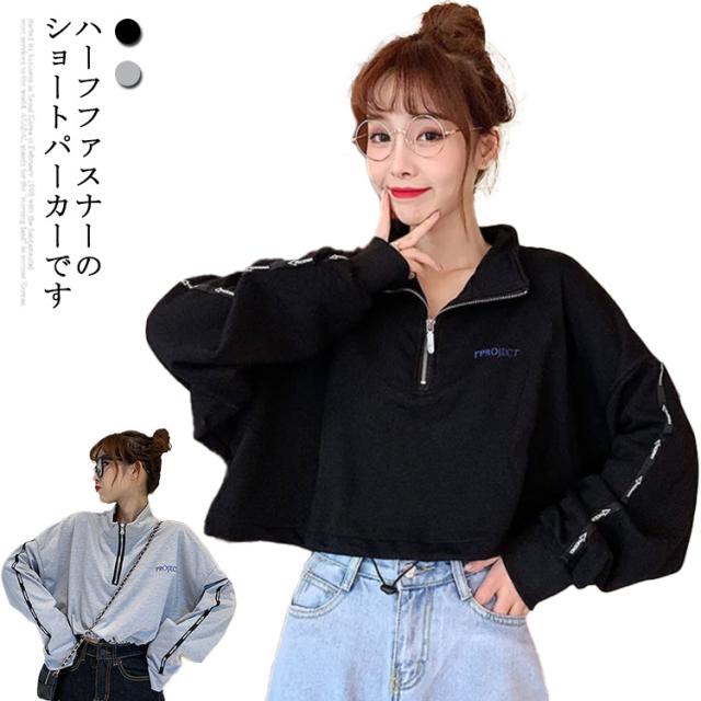 原宿系 ダンス衣装 ショート丈 パーカー レデイーズ 長袖 トップス ヒップホップ 韓国ファッション ショートパーカー パーカー レディース ハーフファスナー お洒落 カジュアル 春 夏 秋 送料無料