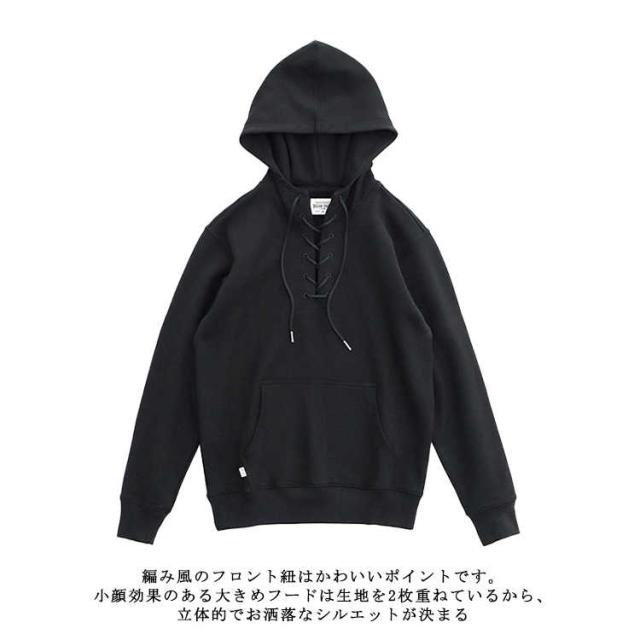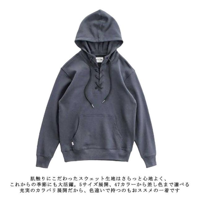 | 着回し力抜群のお洒落、大人のカジュアルスタイルを格上げするサイドスリットパーカーです。 編み風のフロント紐はかわいいポイントです。 小顔効果のある大きめフードは生地を2枚重ねているから、立体的でお洒落なシルエットが決まる。 肌触りにこだわったスウェット生地はさらっと心地よく、これからの季節にも大活躍。 5サイズ展開、47カラーから差し色まで選べる充実のカラバリ展開だから、色違いで持つのもおススメの一着です。 スタイリッシュな見栄えに仕立ててくれ、休日でもカッコ良くスタイリング。 デニムやチノ、セットアップスタイルなど様々な着こなしができるおススメ品です。 ちょっとしたお出掛け、ルームウエアとしてお勧めのアイテムです。 | |