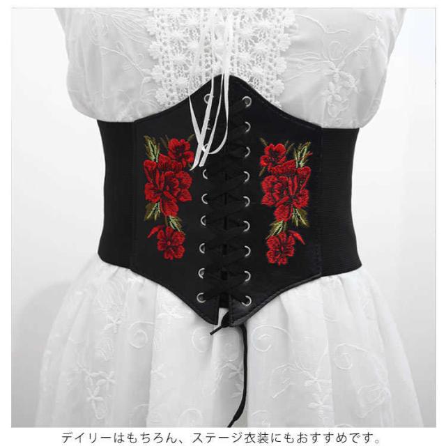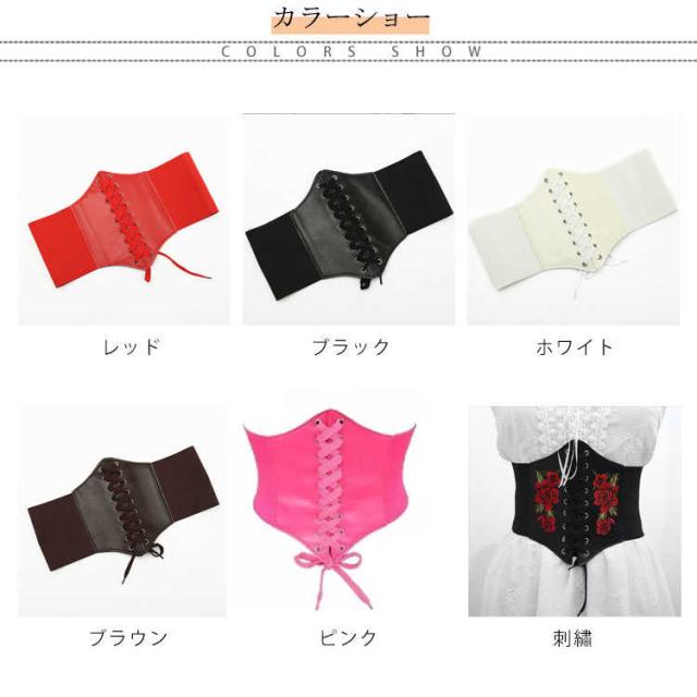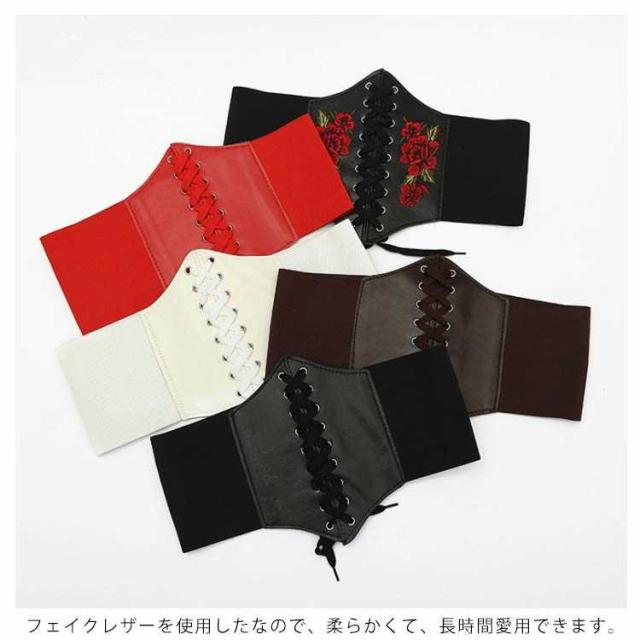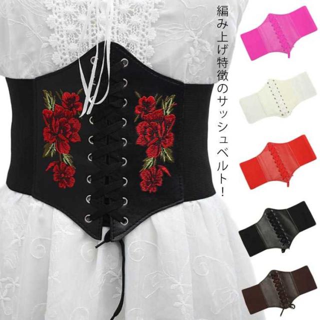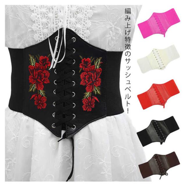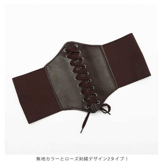 ローズ 編み上げ 刺? レディース 太め 太ベルト フリル サッシュベルト 合成皮革 フェイクレザー コルセット レースアップ レースアップ ワイドベルト ゴムベルト