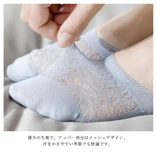 超深履き スニーカー 脱げない ドライビングシューズ 靴下 メッシュ 5足セット おしゃれ カバーソックス カバーソックス 蒸れない レディース デッキシューズ ローファー 滑り止め付き 見えない 通気性抜群 シンプル 無地 【送料無料】フットカバー