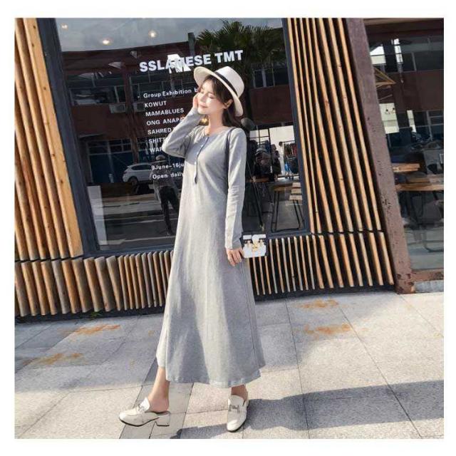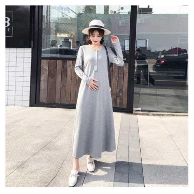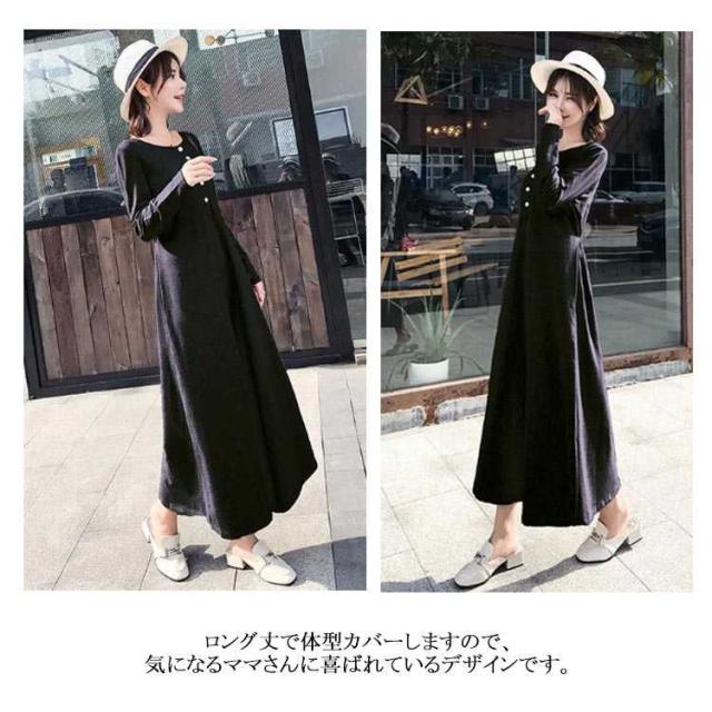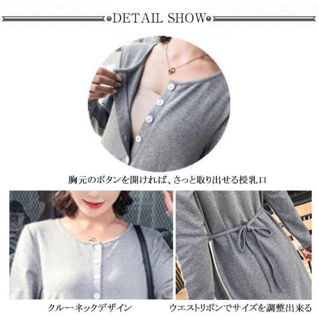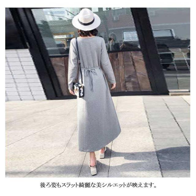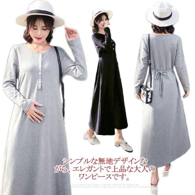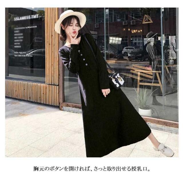 ワンピース マキシワンピース 春秋 長袖 薄手 授乳服 マキシ丈 Uネック マタニティ 無地 カジュアル 体型カバー 授乳ワンピ シンプル 産前産後 レディース
