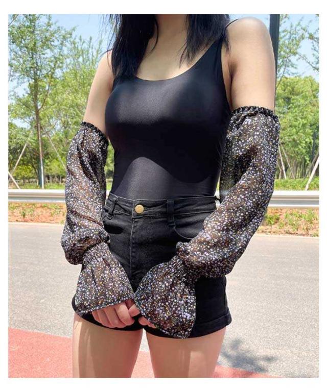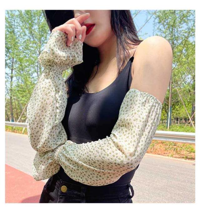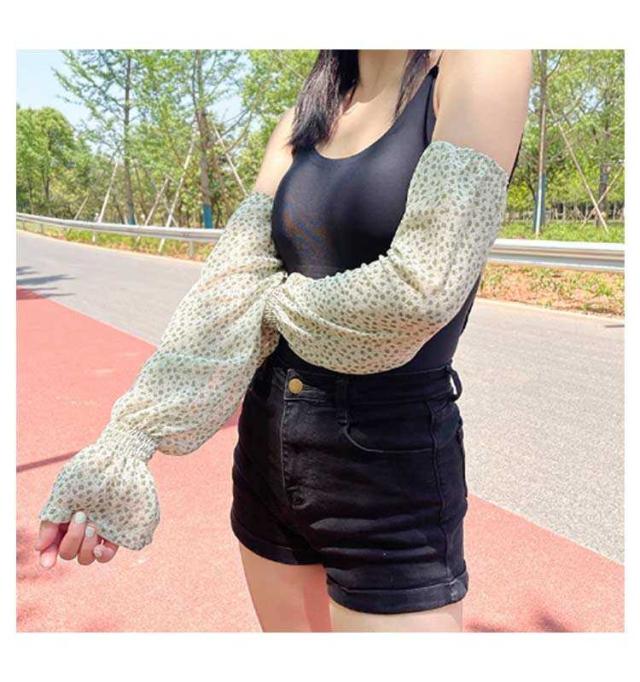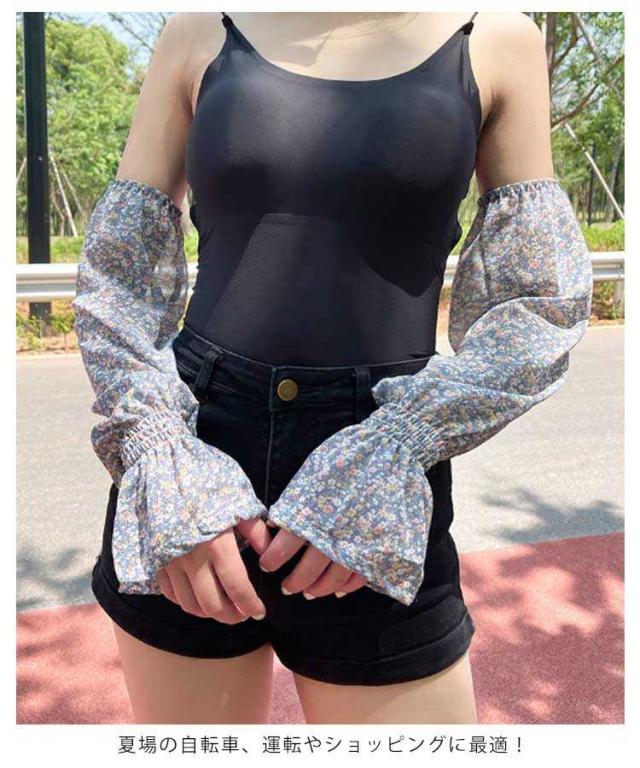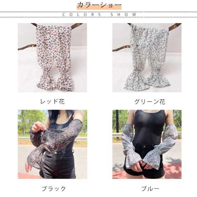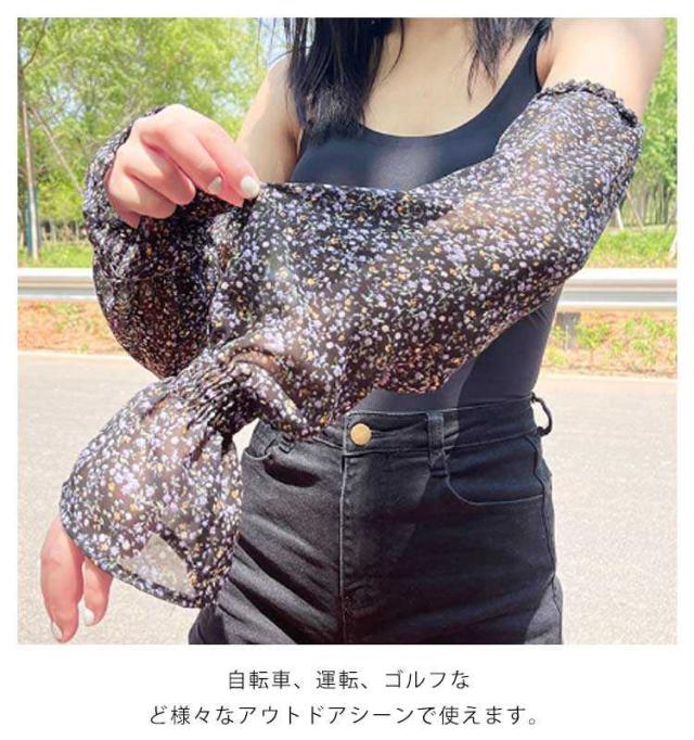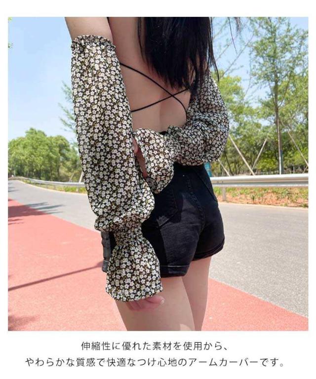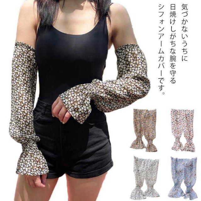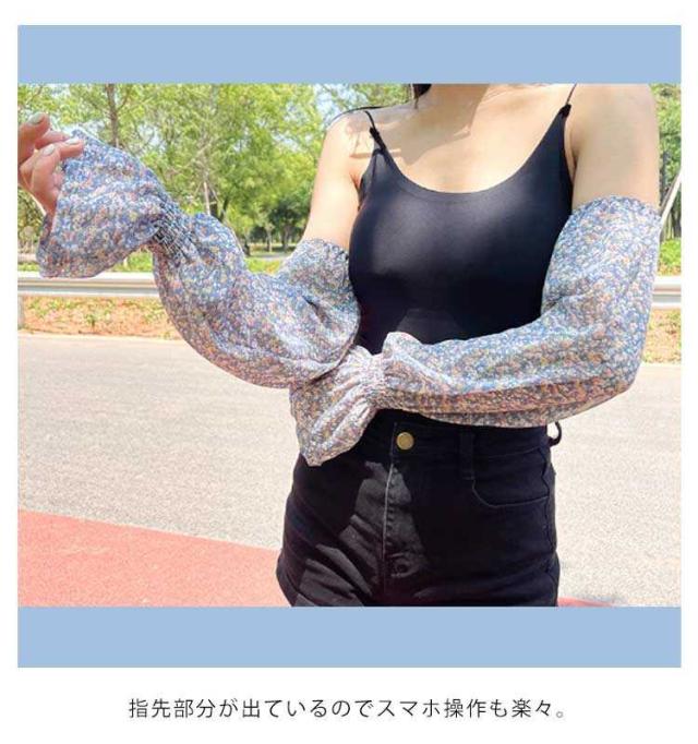 腕カバー 接触冷感 アームカバー ロング アームスリーブ ひんやり 花柄 シフォン 涼しい 花柄 冷房対策 指なし 日よけ おしゃれ 可愛い 速乾