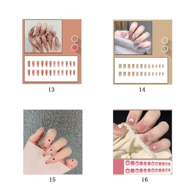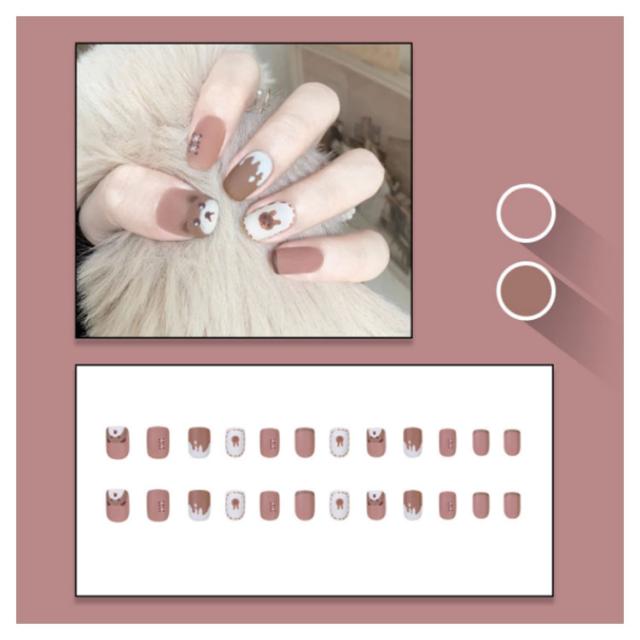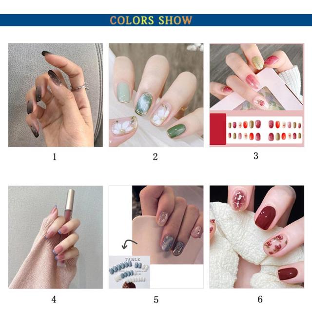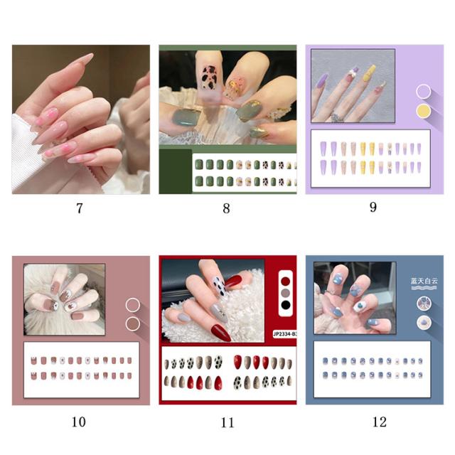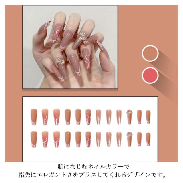 | サイズについての説明 | ☆使用方法☆1. 爪をリムーバーなどでキレイにして乾燥します。2. 爪にあったサイズを選んでください。3. つけ爪の裏面に少量の接着剤をつけ、 爪の根元にあわせて置き、13秒程度押し付けます。【はずし方】ステックなどを側面から差込み、ゆっくりはがします。ネイルグルーリムーバーをしみ込ませると効果的です。 |