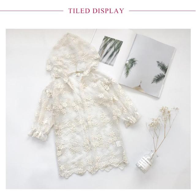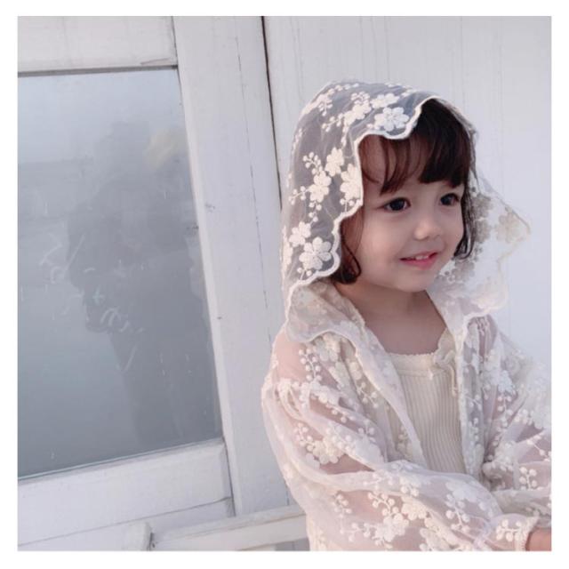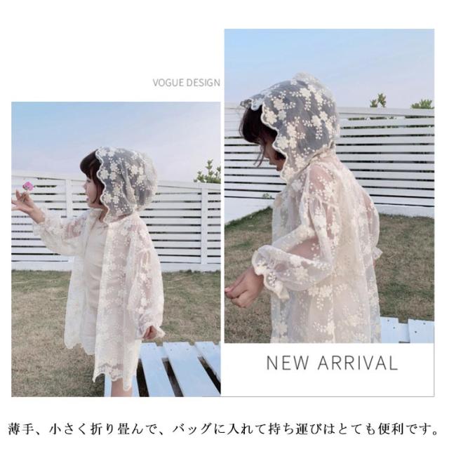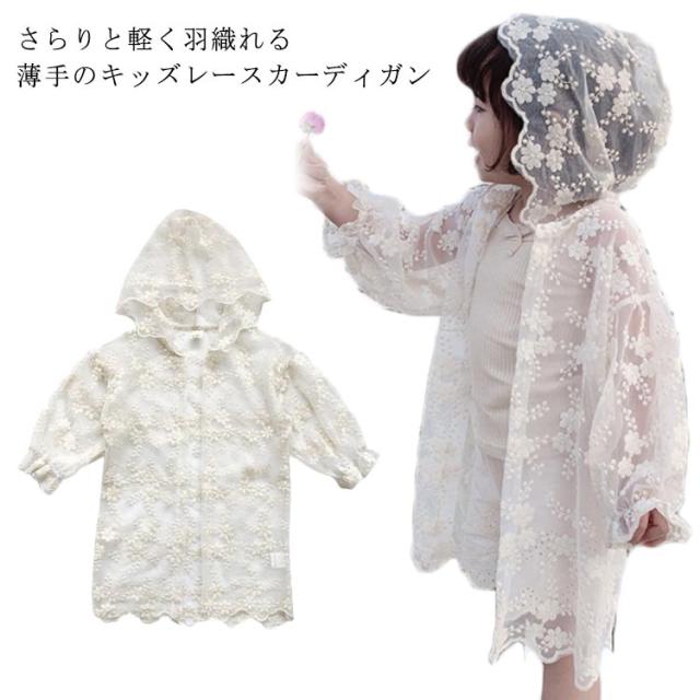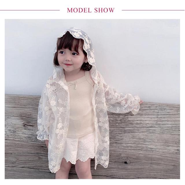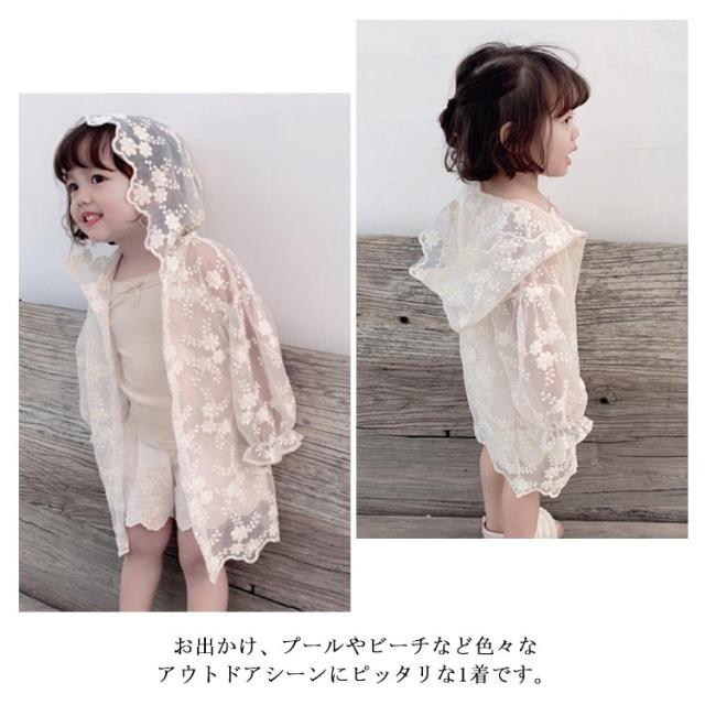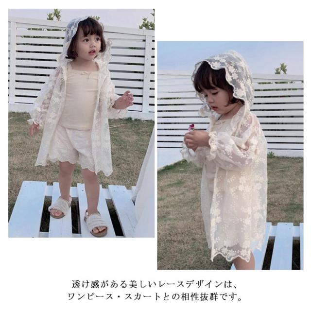 フード付き 水着用 アウトドア 長袖 透け感 レース 【送料無料】UVカーディガン ジュニア 女の子 ベビー プール 子供用 紫外線カット 可愛い ロング丈 海 子供用 レイヤード ラッシュガード UVパーカー 海水浴 水遊び 羽織り 日焼け対策 速乾 冷房対策 キッズ