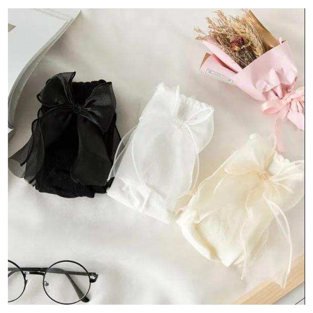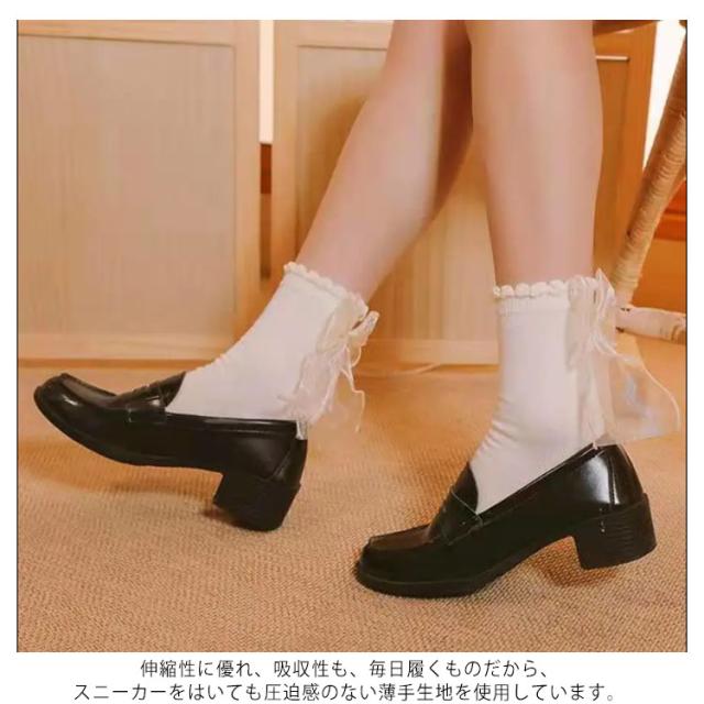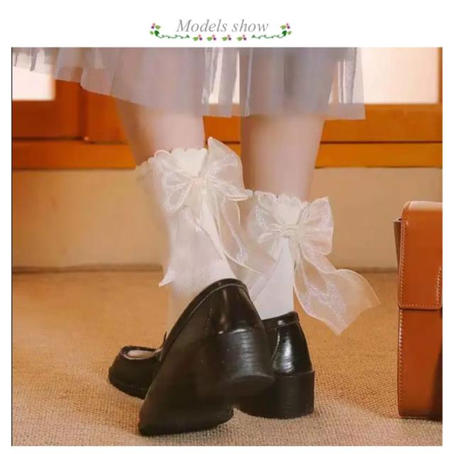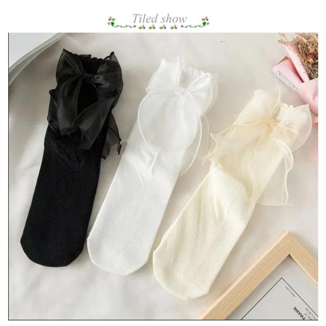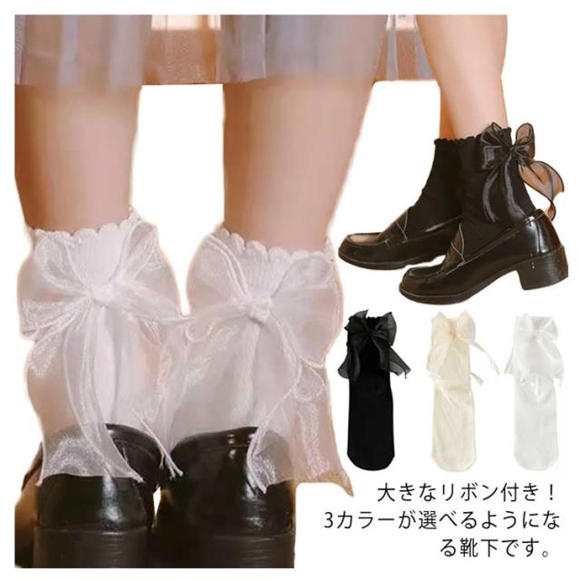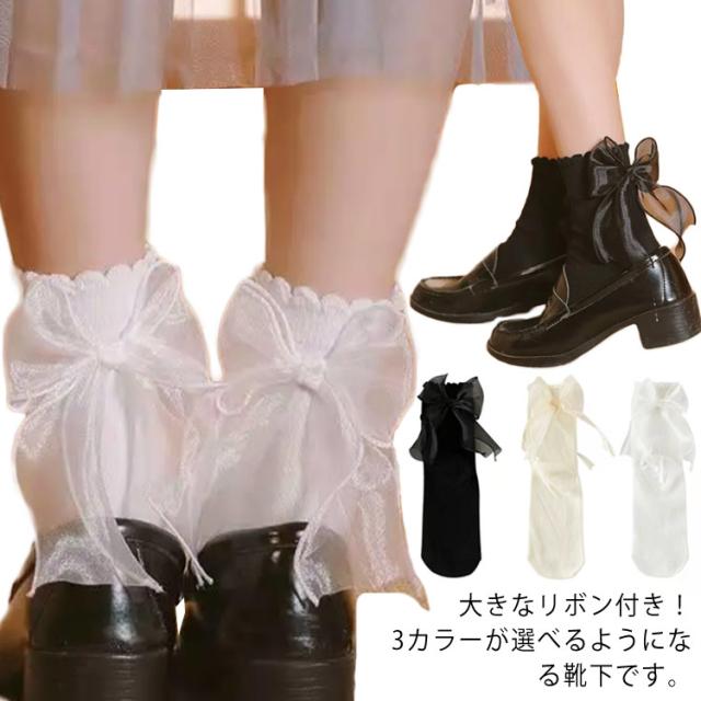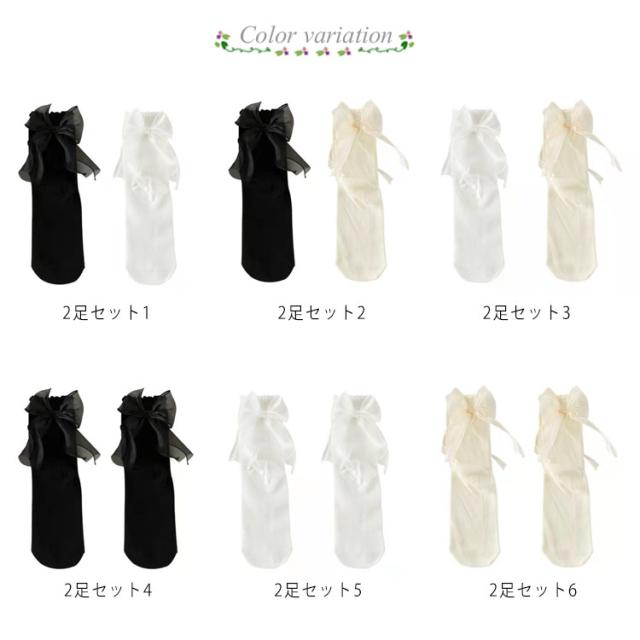 レディース 大きなリボン付き!靴下 ソックス 2点セット 綿 クルーソックス ルーズソックス おしゃれ ロリィタ ミドルソックス ハイソックス フリル 秋 コットン 婦人靴下 かわいい jk 女子高生 くつ下 春 夏 綿混