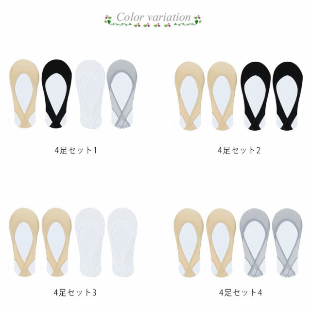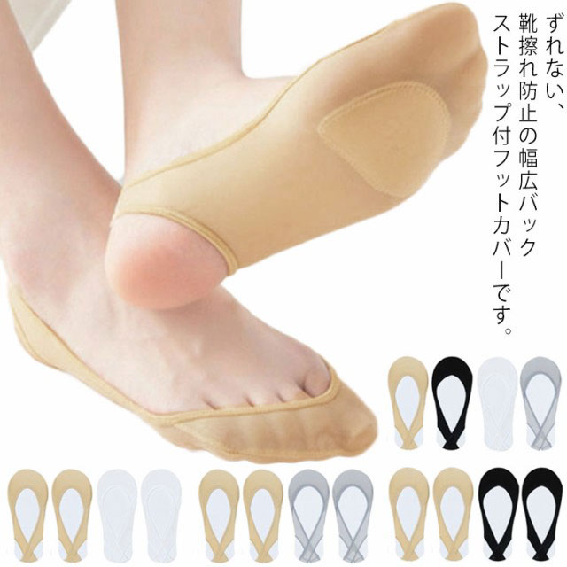 幅広バックストラップ付フットカバー パンプス レディース くつした ソックス レディース 脱げにくい 歩きやすい ソックス 4足セット 快適 薄手 靴下 ズレない おしゃれ 滑り止め かかと 浅い ひんやり パンプス用