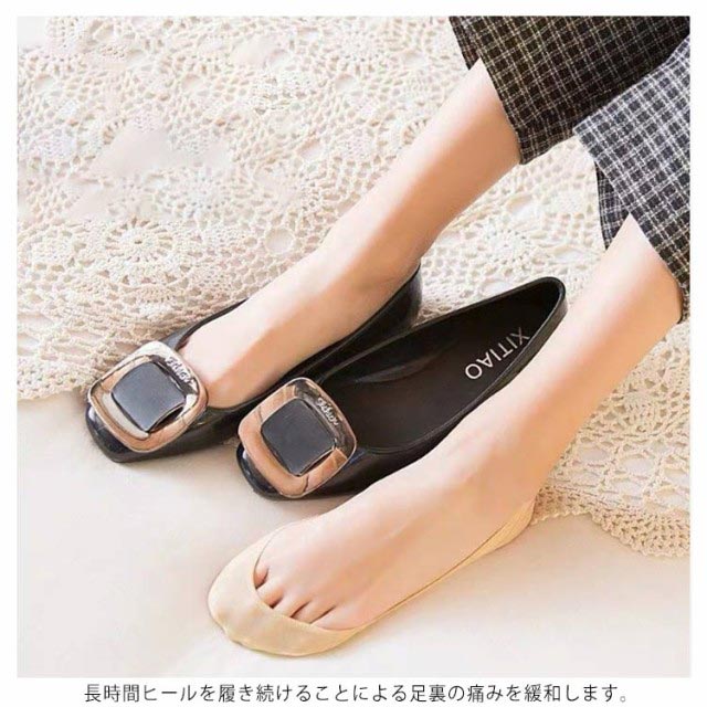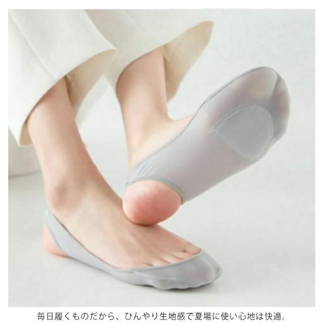 | ずれない、靴擦れ防止の幅広バックストラップ付フットカバーです。 蒸れ防止に、汗で滑りやすいパンプスにもおすすめです。 お得な4足セットです。 前足の裏をやさしく保護してくれる衝撃吸収クッション内蔵。 長時間ヒールを履き続けることによる足裏の痛みを緩和します。 毎日履くものだから、ひんやり生地感で夏場に使い心地は快適。 | |