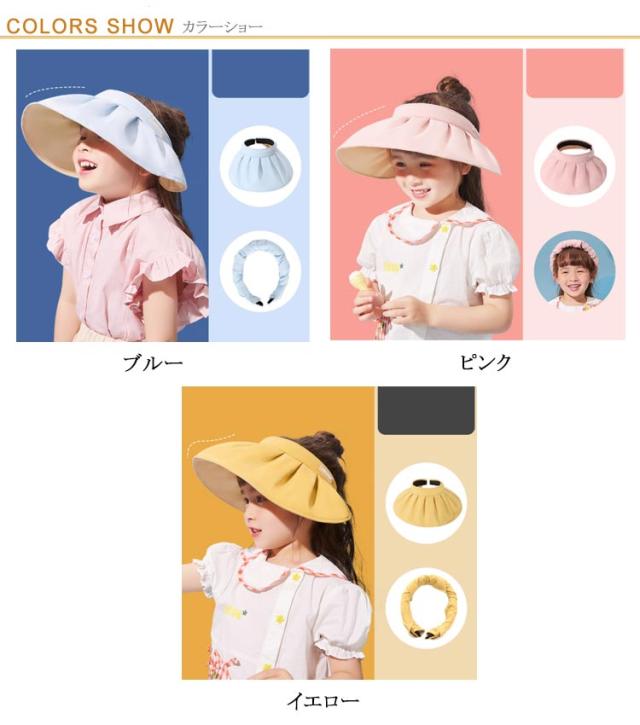 | ヘアバンドに変身できる!2wayキッズサマーハット 12CMつば広で顔が隠して、しっかり紫外線カット、お子様デリケートな肌を守ります。 使わない時はつば部分をくるっと巻く、ヘアバンドに変身!持ち運びは非常に便利です。 頭当たる部分は吸汗性優れる素材を使い、いつも爽やかな着け心地を保ちます。 お洋服にコーディネートしやすく、おしゃれにキマル! 通園・通学等の普段使いやお出掛け・旅行にも幅広く活躍します! | |