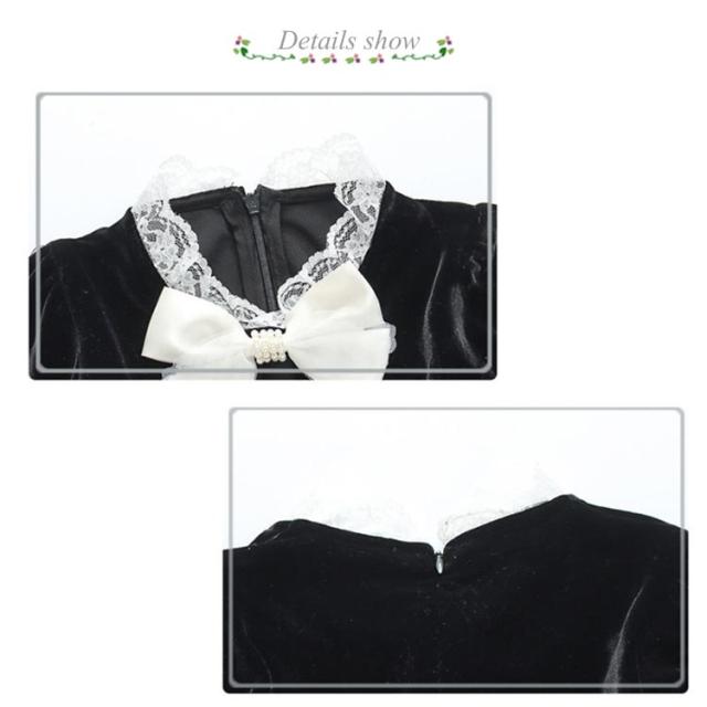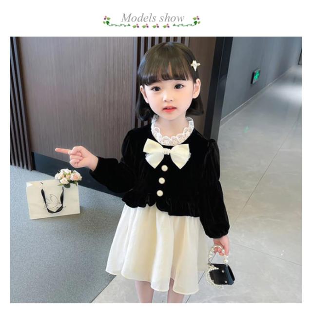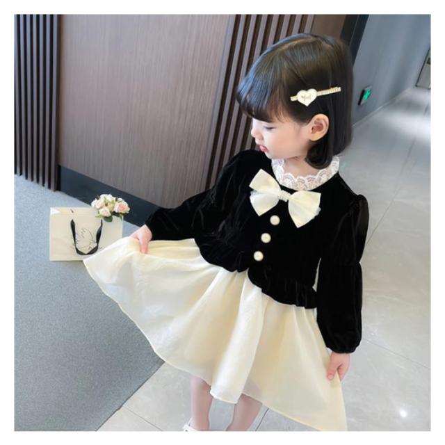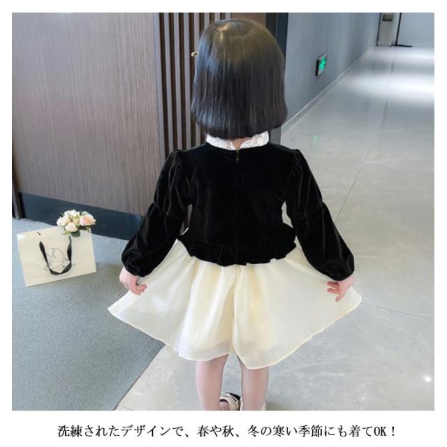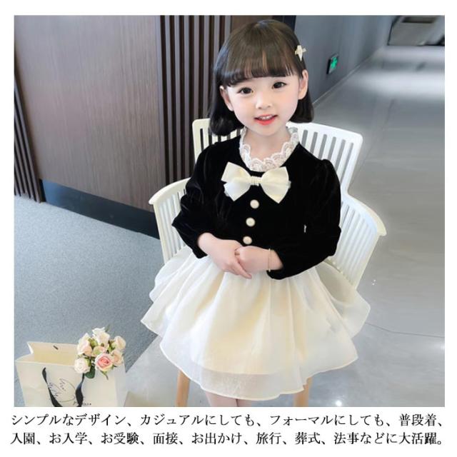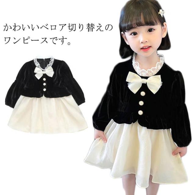 | かわいいベロア切り替えのワンピースです。 ワンピースがお嬢様っぽくすごく可愛いです。 パールとリボンはかわいいポイントです。 洗練されたデザインで、春や秋、冬の寒い季節にも着てOK! 高級感と可愛らしさが漂う、カジュアルの場合はもちろん、発表会と演出会やパーティなどのフォーマルな場面に着こなしてもおすすめです。 シンプルなデザイン、カジュアルにしても、フォーマルにしても、普段着、入園、お入学、お受験、面接、お出かけ、旅行、葬式、法事などに大活躍。 | |