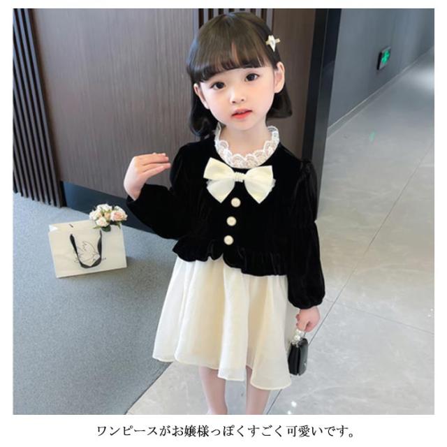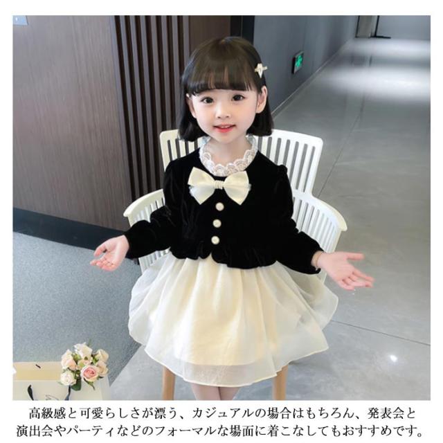 卒園式 セレモニードレス 女の子 リボン 子供服 長袖 女の子 ワンピース 100 フォーマル セットアップ 子供 入学式 パール 結婚式 七五三 ピアノ 発表会 90 100 110 ベロア