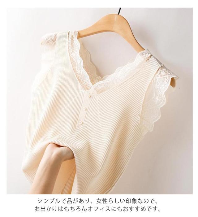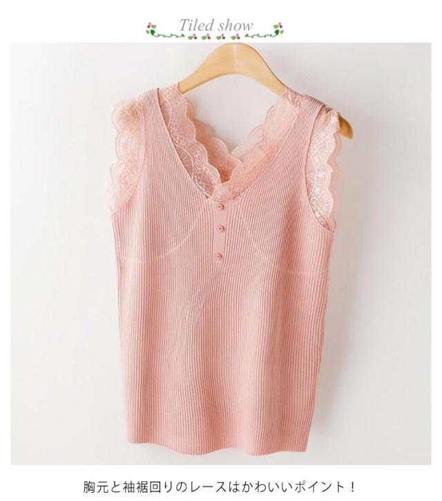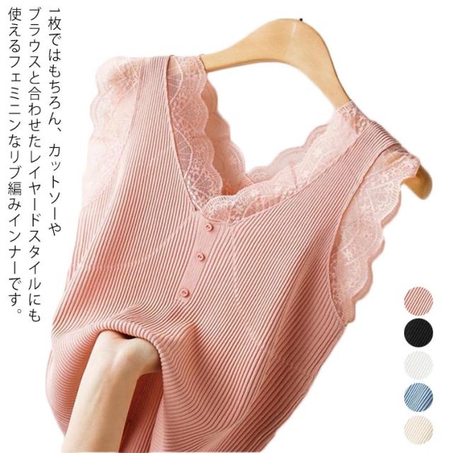 リブインナー 見せる下着 重ね着 トップス タンクトップ ノースリーブ メロウ vネック レディース レイヤード リブ編み S-3XL キャミソール 着?せ ストレッチ レースキャミ フェミニン 見せインナー レース