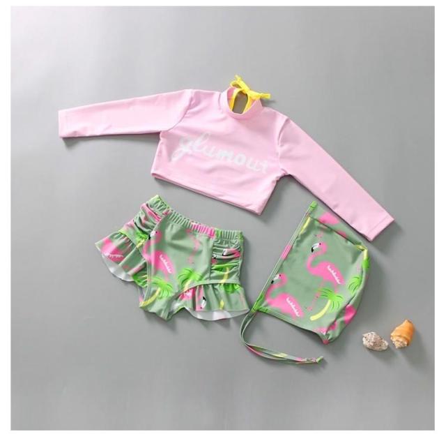| カラフルで目を引くボタニカル柄デザイン、脱ぎ着がしやすい作りになってる水着です。 セパレートで動きやすい、パンツに大きなフリルがかわいい。 長袖トップスとショートパンツの組み合わせ! 長袖なので、紫外線から肌を守る、お子様のデリケートな素肌を日焼けからばっちりガード。 お洒落Girlも大満足、フリルで愛らしさ! 今年の夏はいっぱいいっぱい遊ばせたい、夏の思い出を残すアルバムにも、最高に可愛い姿を残す。 | |