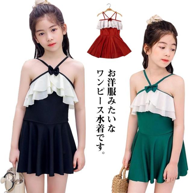 水遊び 女の子 かわいい ワンピース インナーパンツ付き 水着 キュート 子供水着 おしゃれ ジュニア フリル 小学生 女児 キッズ プリンセス 体型カバー 女子 L プール ガールズ S M 動きやすい