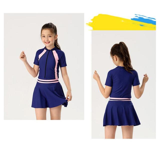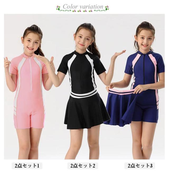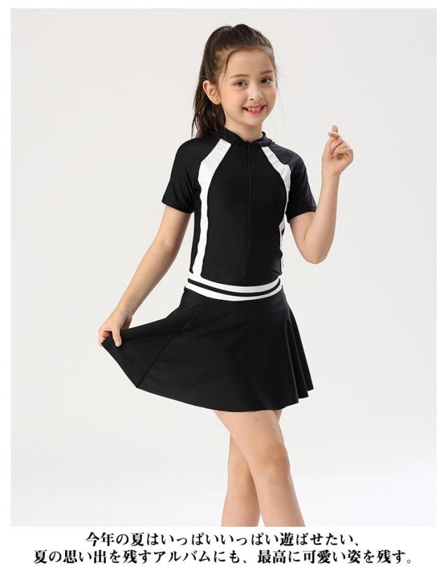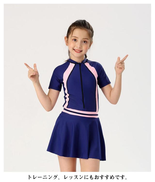 練習 上下セット 子供水着 上下セット スポーツ キッズ 子供 スカート付き 半袖 キッズ水着 水着 M 2点セット 女の子 学校用 スクール水着 シンプル 速乾 ストレッチ ビーチ 海 プール かわいい L XL 女の子