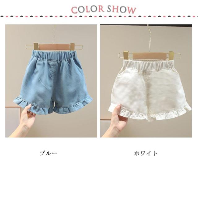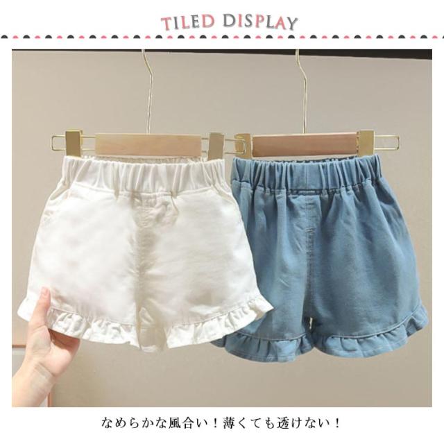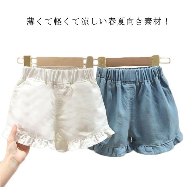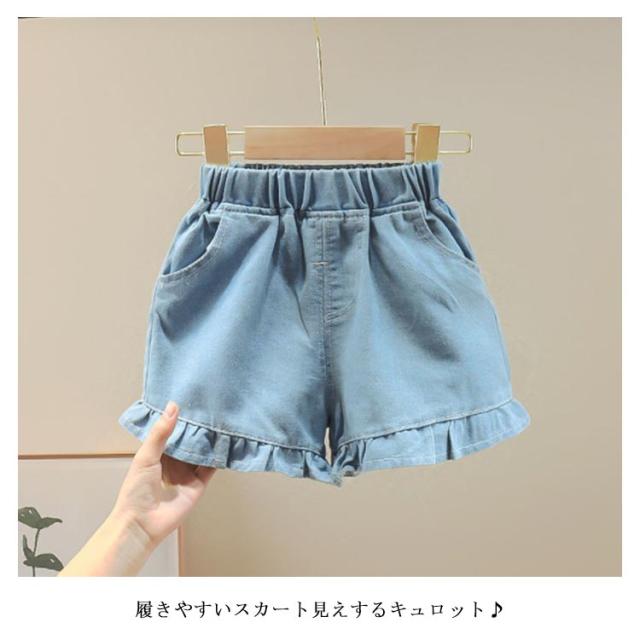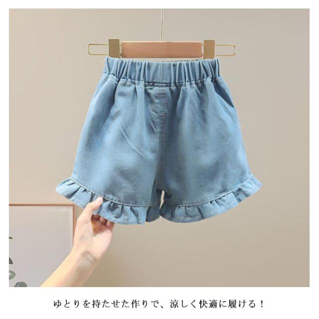 子供服 ショートパンツ キュロット 女の子 夏服 裾フリル 裾フリル 春服 フレア ハーフパンツ ボトムス 短パン デニム ウエストゴム カジュアル ジュニア キッズ 送料無料