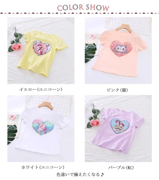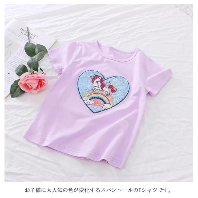 スパンコール 半袖カットソー 夏 送料無料 無地 女の子 子供服 キッズ 130cm ユニコーン 韓国子供服 春 通学 ダンス衣装 半袖Tシャツ 通園 トップス プレゼント 100cm 110cm 120cm 女の子