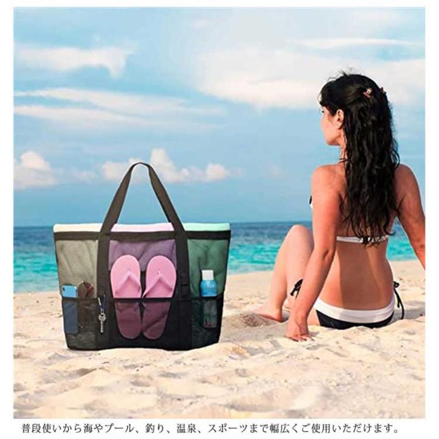 | 中身が一目瞭然!プールや海へ水遊びに最適なメッシュバッグ 洗える乾きやすい、通気性抜群のメッシュ素材を使用します。 濡れても大丈夫だから、子供のお砂場グッズ収納にも◎ たっぷりの収納ポケット付きで、持って行く必要品はこのひとつで全部まとめる。 普段使いから海やプール、釣り、温泉、スポーツまで幅広くご使用いただけます。 デザインもカラーもシンプルだから、どんな場面、ファッションにも合わせやすくて便利! | |